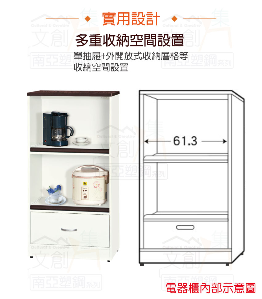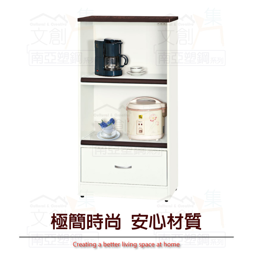 【文創集】寶莉 環保2.2尺南亞塑鋼單抽層架中餐櫃/收納櫃 產品採用第一品牌-台製南亞塑鋼舒美板+五金滑軌結構材質,整體材質採用防水+防燃+無甲醛安心塑鋼材質製造 ,搭配單抽屜+內&外開放式層格+拉合式層架等便利收納空間設計,防止受潮,增加支撐力,堅固不會塌陷,全由專人配送到家,專業安心服務,替你省下更多時間!