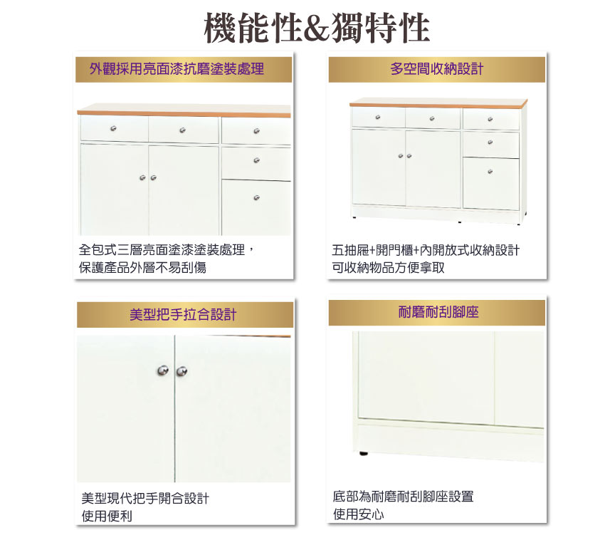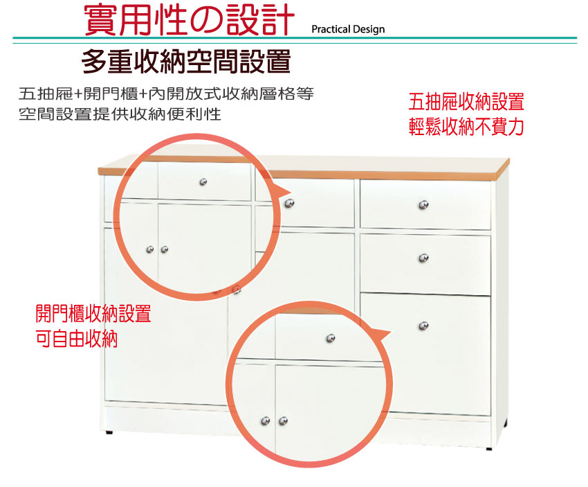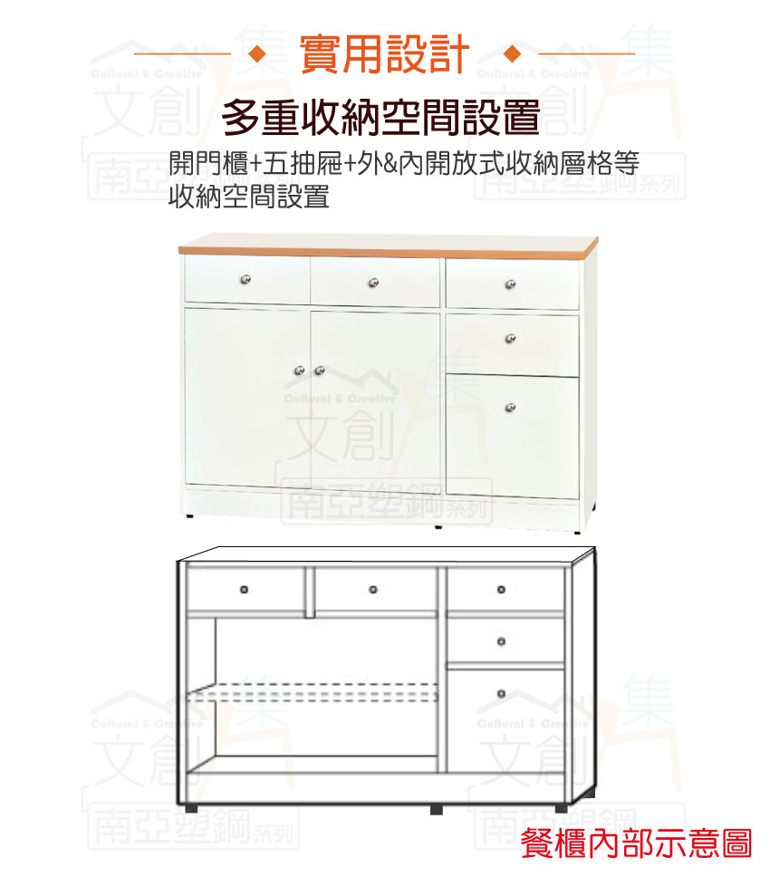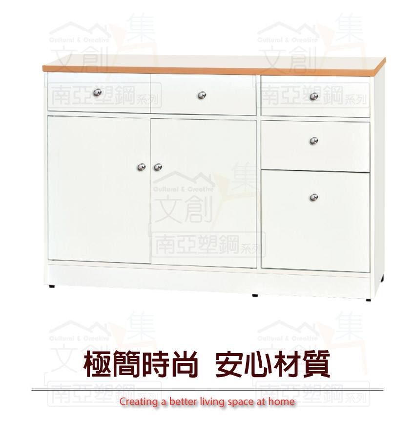 【文創集】波莉 環保4.2尺南亞塑鋼二門五抽餐櫃/收納櫃(客約商品)