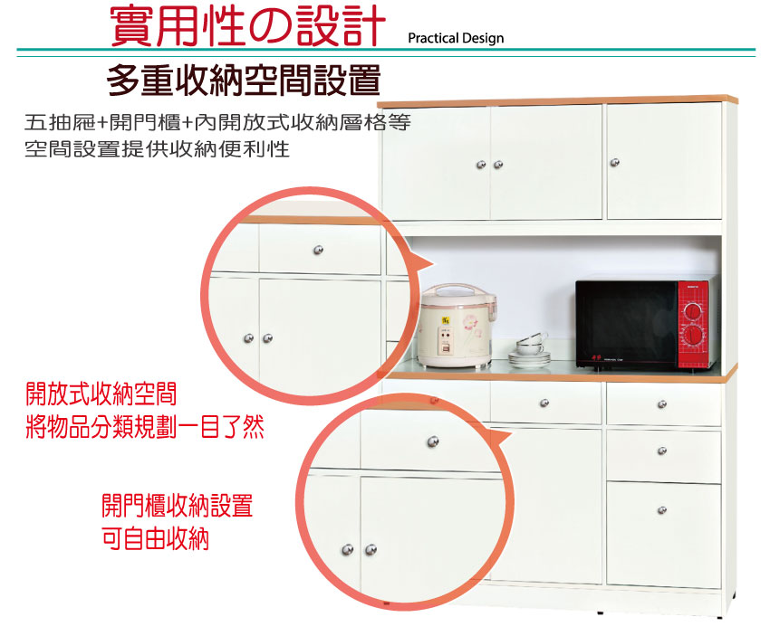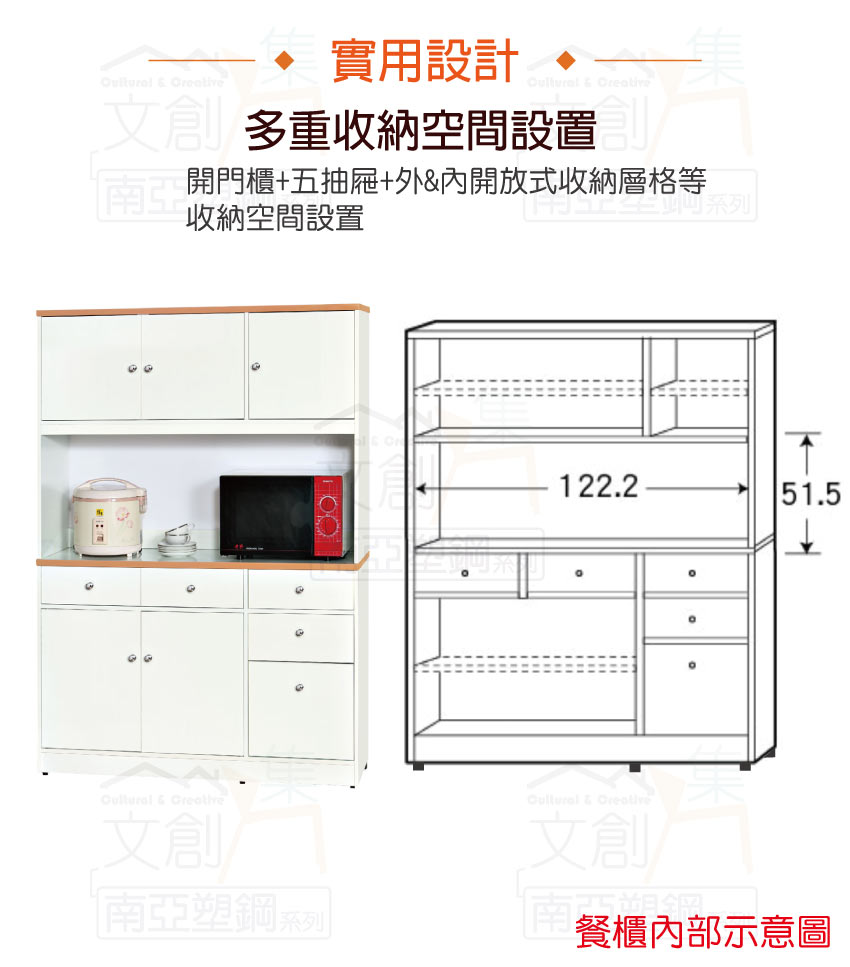 【文創集】波莉 環保4.2尺南亞塑鋼五門五抽高餐櫃/收納櫃組合(客約商品)