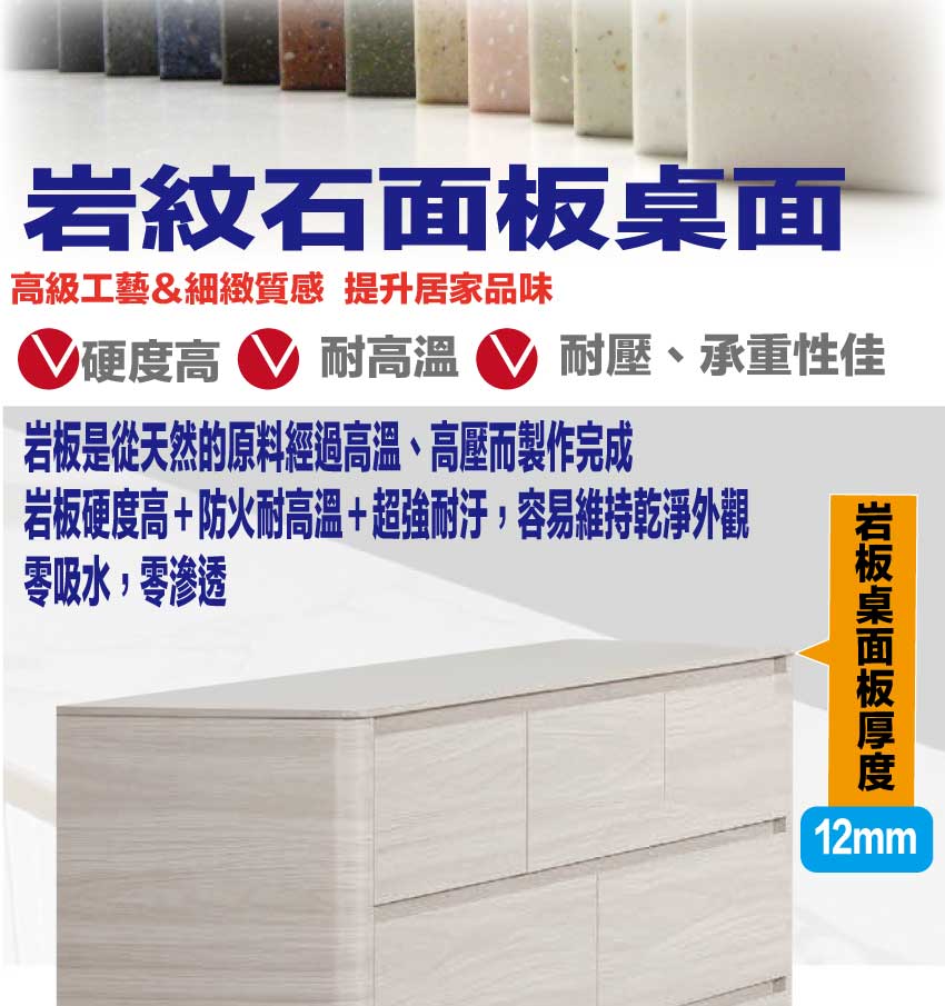 採用實木耐磨腳座+五金滑軌結構+12mm高硬度岩板桌面板等安心材質製造