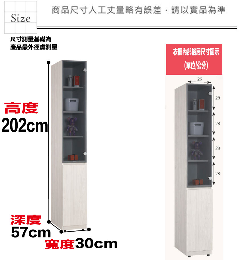 尺寸:(寬)30x(深)57x(高)202/公分