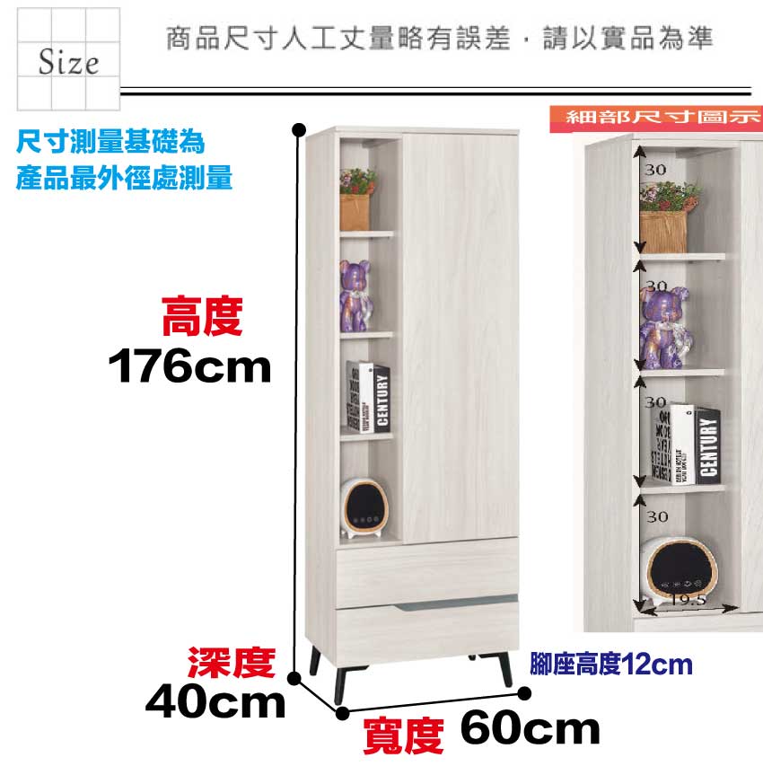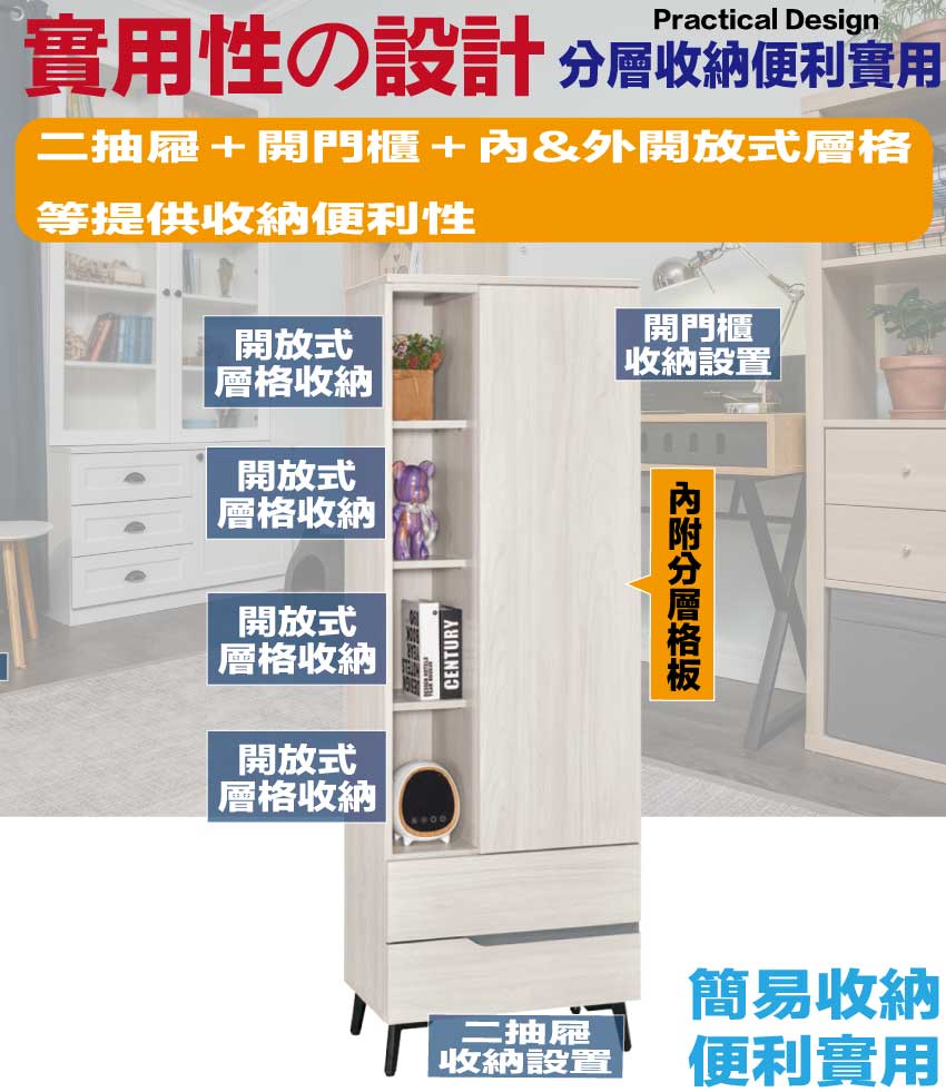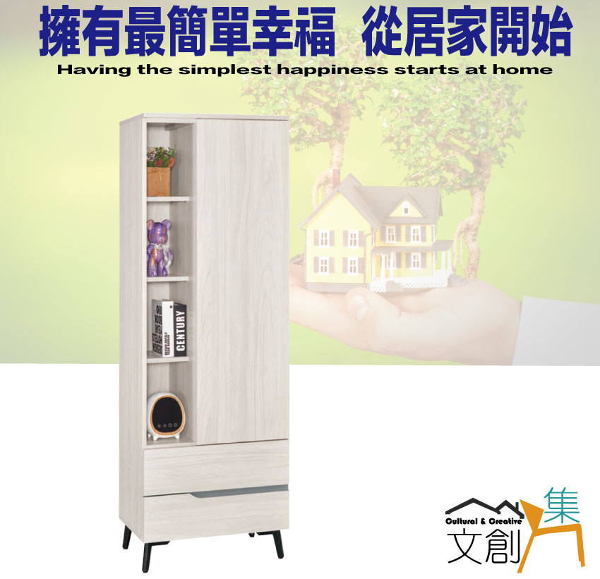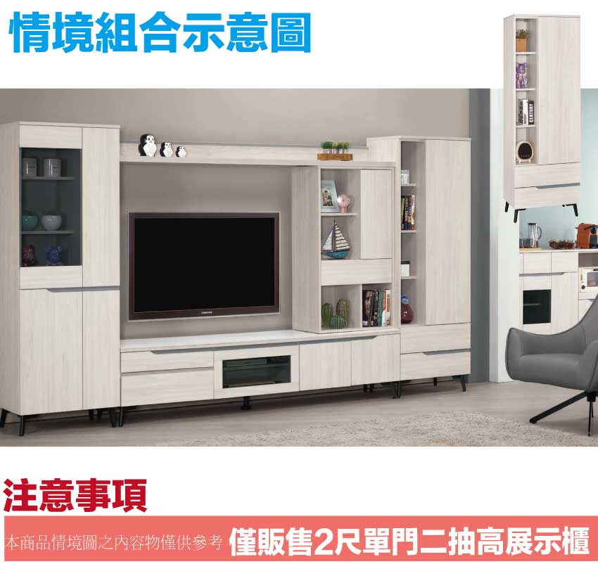 【文創集】丹尼2尺單門二抽半開放高展示櫃(客約商品)