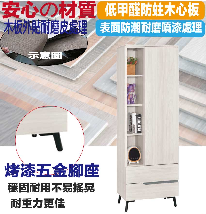 材質:防蛀木心板+烤漆五金腳座+防夾手緩衝門片五金+五金滑軌結構
