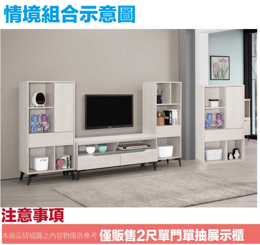 【文創集】丹尼2尺單門單抽半開放低展示櫃(客約商品)