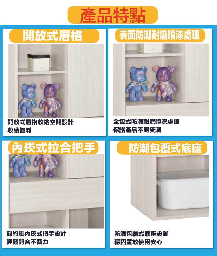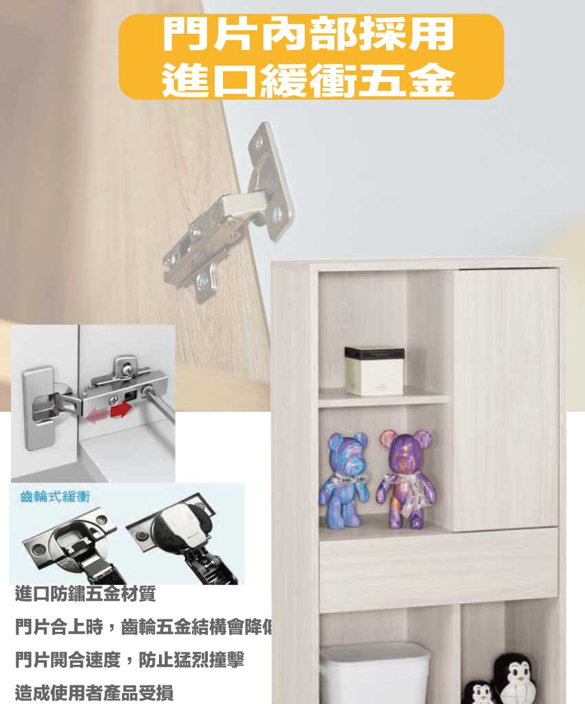 材質:防蛀木心板+防潮耐磨底座+防夾手緩衝門片五金+五金滑軌結構