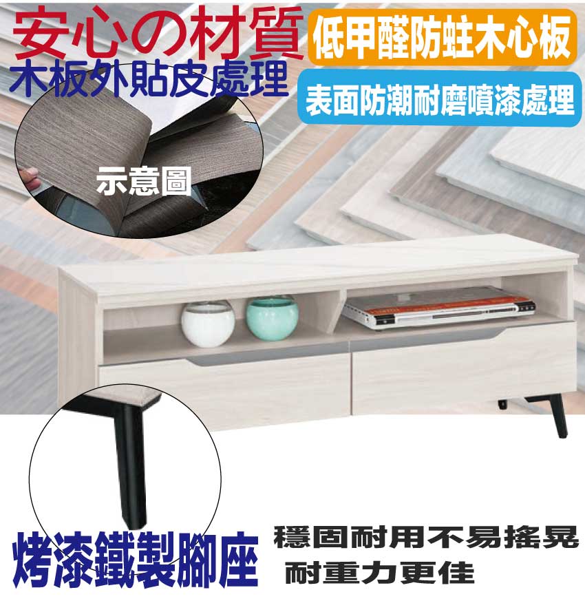 【文創集】丹尼4尺岩板二抽電視櫃 木紋雙色系+安心材質製造,使用放心+搭配居家更便利,採用防蛀木心板+烤漆五金腳座+五金滑軌結構+12mm高硬度岩板桌面板安心材質製造 ,外層採用防潮耐磨噴漆處理搭配採用二抽屜+開放層格等收納空間設計,全由專人配送到家,專業安心服務,替你省下更多時間!