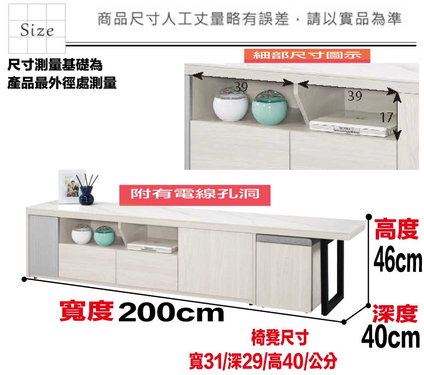 電視櫃內搭配可掀蓋收納化妝椅凳,滿足您居家空間使用便利性