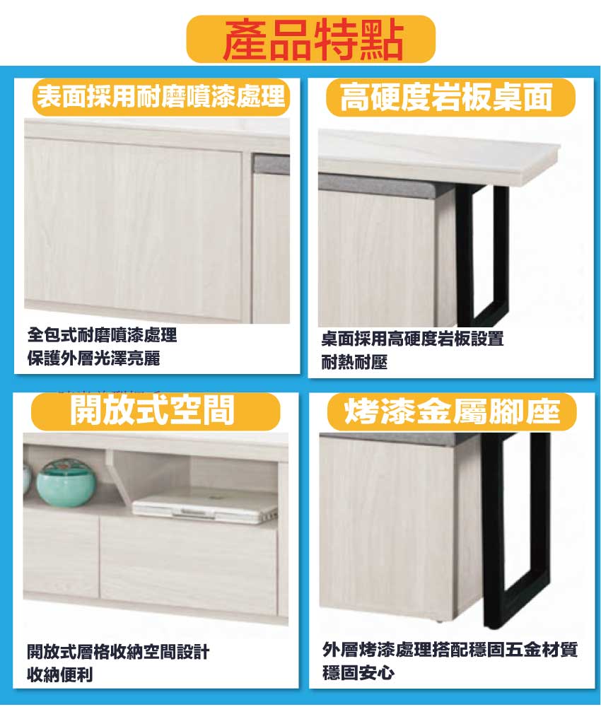 採用防蛀木心板+五金滑軌結構+烤漆金屬腳座+防夾手緩衝門片五金+12mm高硬度岩板桌面板等安心材質製造
