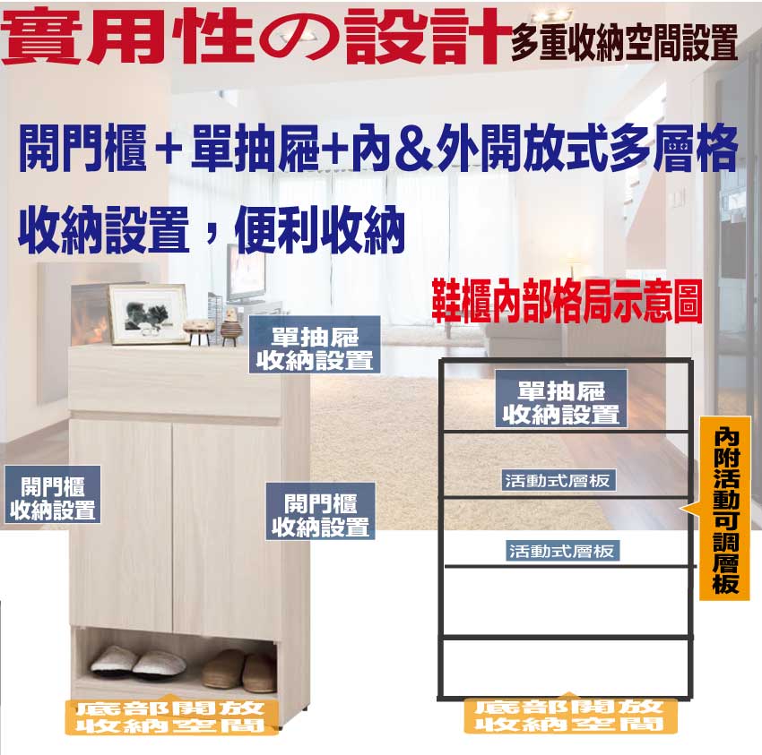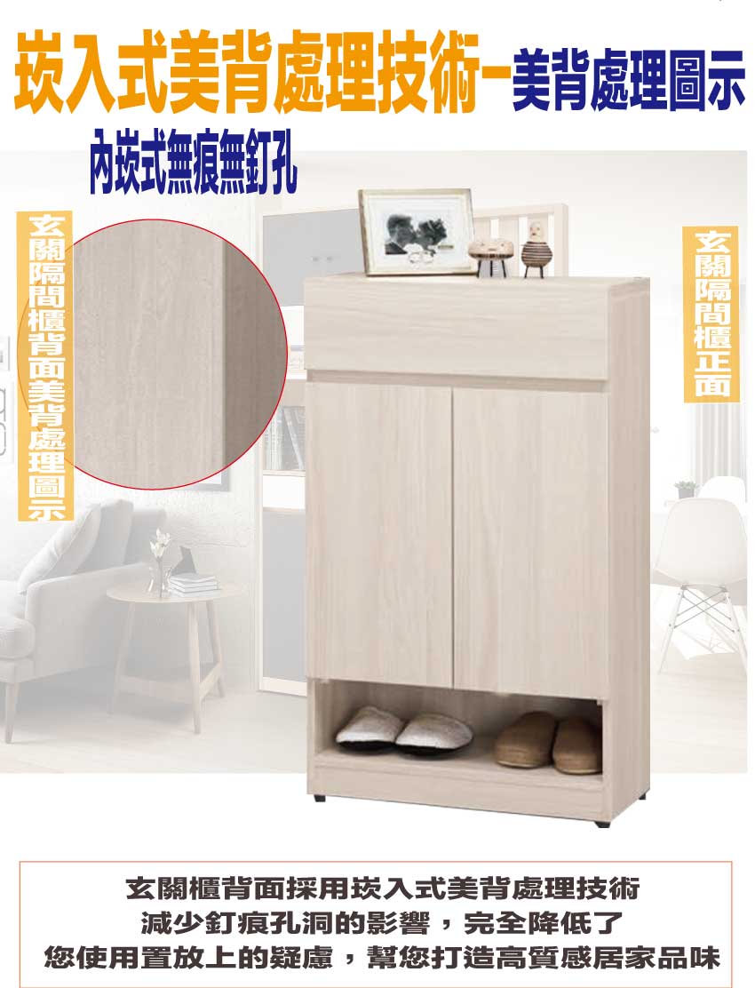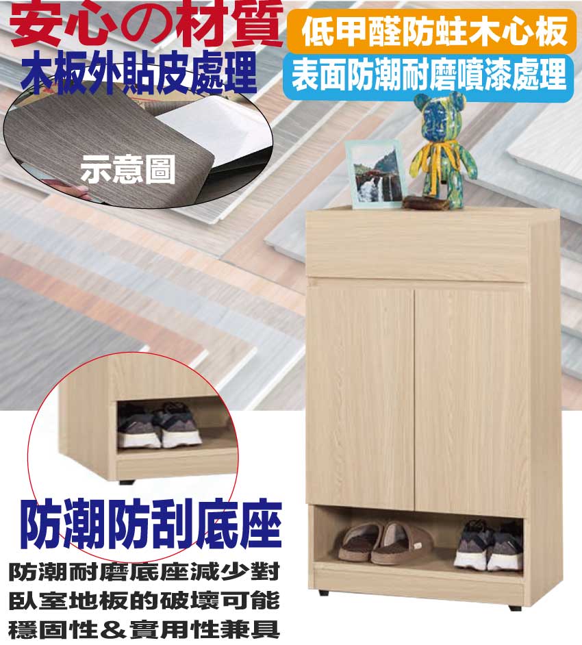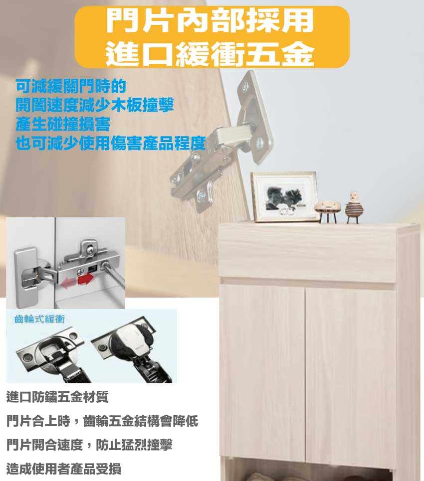 材質:防蛀木心板+防潮耐磨腳座+防夾手緩衝門片五金+五金滑軌結構