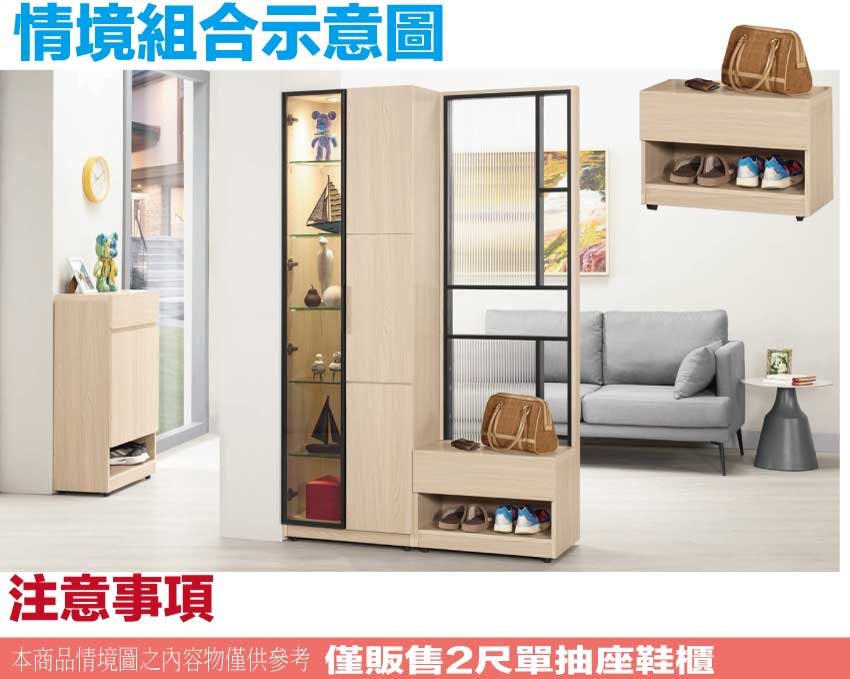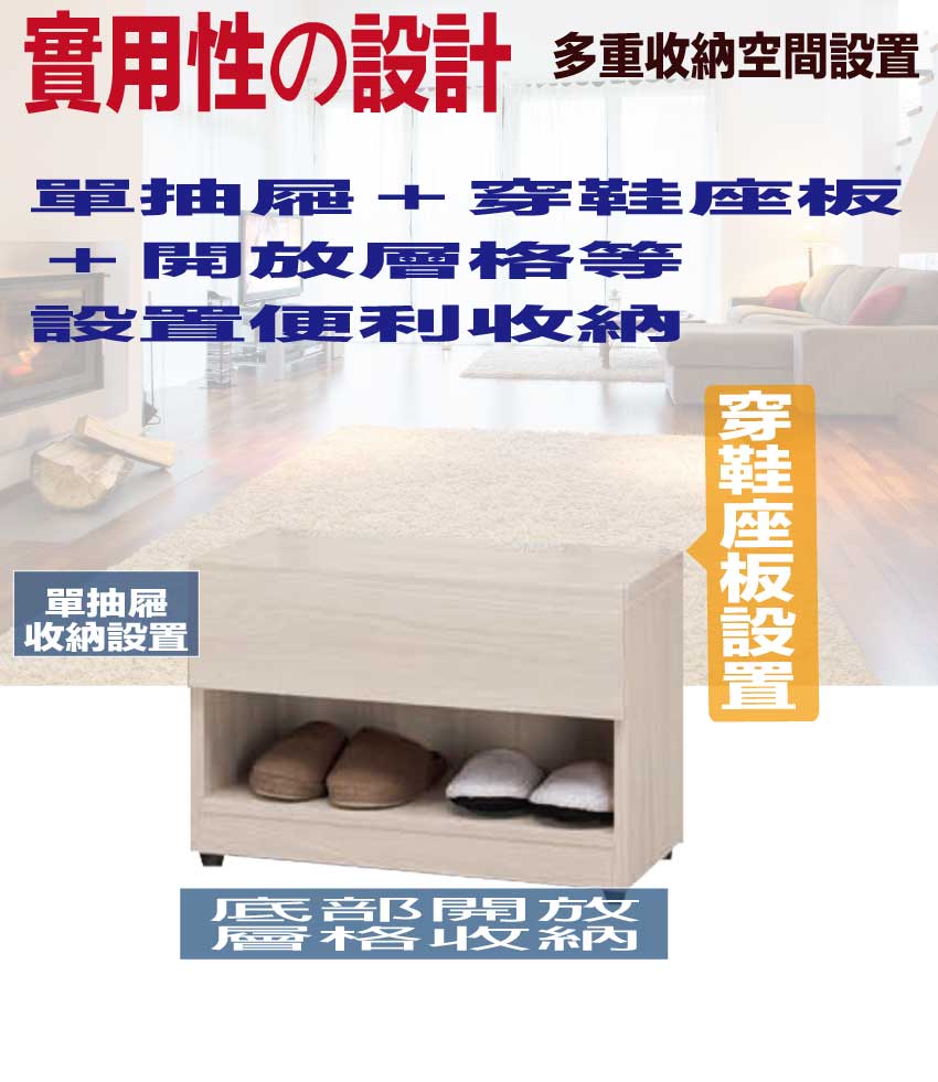 【文創集】朵利2尺單抽座鞋櫃-淺橡木紋色系(客約商品)