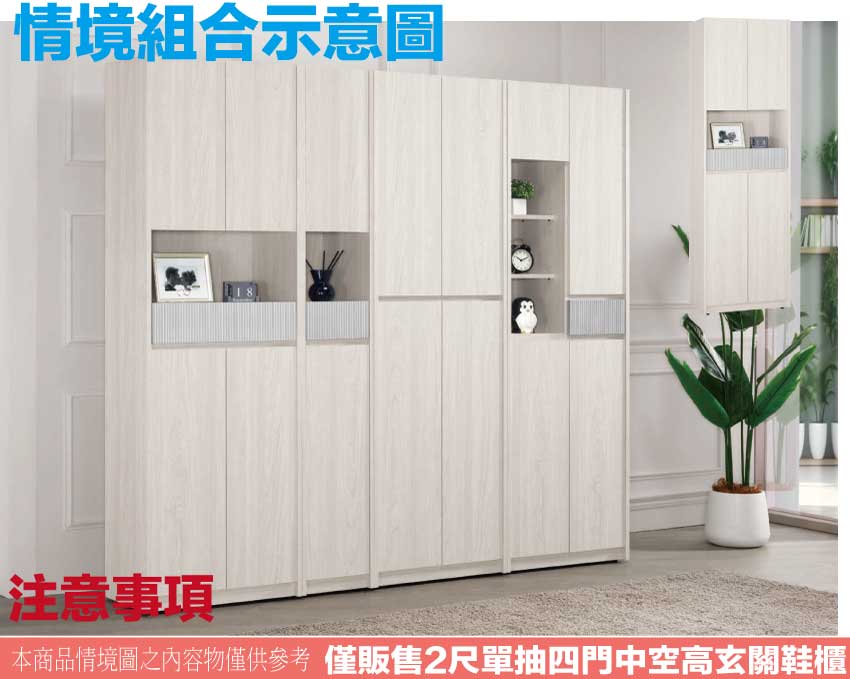 【文創集】克萊雙色2尺四門單抽中空玄關鞋櫃(客約商品)