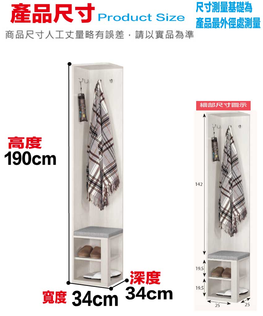 搭配採用開放層格+置物掛勾+穿鞋椅坐墊設置等收納空間設計