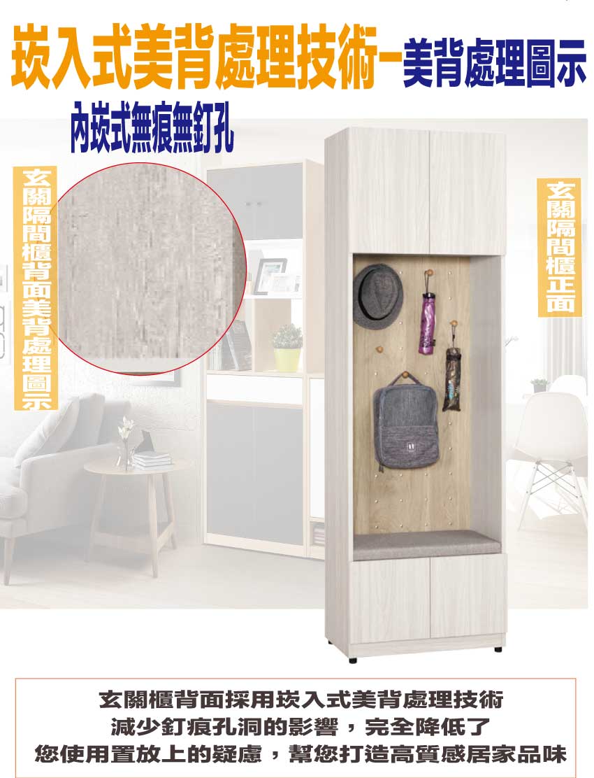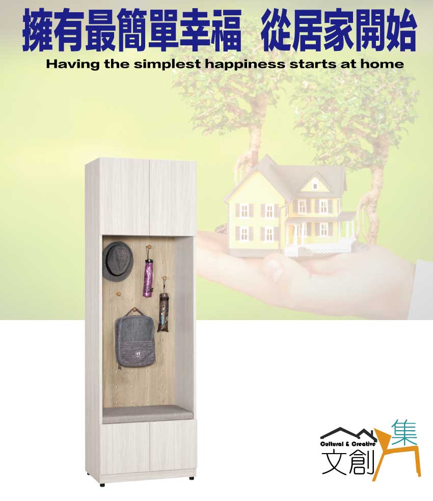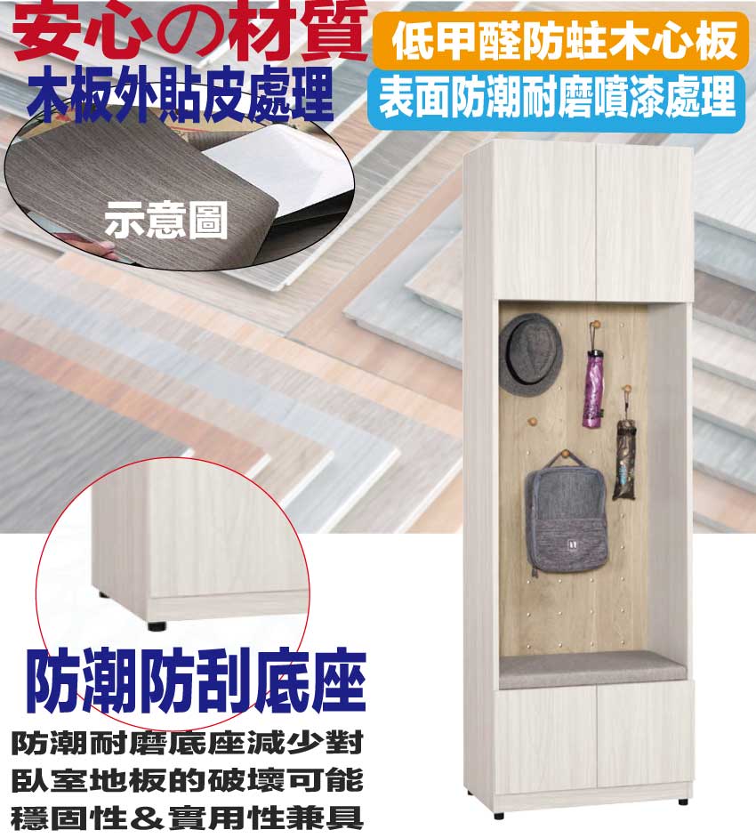 【文創集】寶亞2尺四門開放玄關座鞋櫃 木紋雙色系+安心材質製造,使用放心+搭配居家更便利,採用防蛀木心板+防潮耐磨底座+貓抓皮革坐墊+防夾手緩衝門片五金等安心材質製造 ,外層採用防潮耐磨噴漆處理搭配採用開門櫃+開放層格+置物木棒掛勾(五隻可調整位置)+穿鞋椅坐墊等收納空間設計,全由專人配送到家,專業安心服務,替你省下更多時間!
