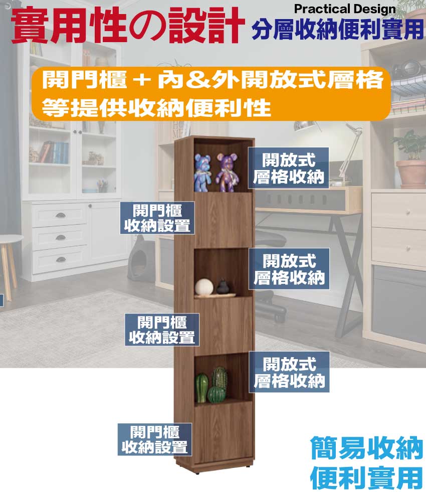 搭配採用開門櫃+內&外開放層格等收納空間設計
