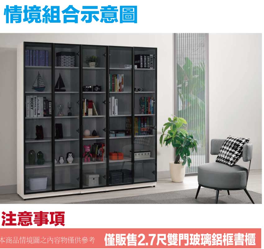 【文創集】萊格2.7尺鋁門黑玻書櫃 木紋雙色系+安心材質製造,使用放心+搭配居家更便利,採用防蛀木心板+防潮耐磨底座+防夾手緩衝門片五金+鋁製黑漆邊框+5mm強化灰玻璃等安心材質製造 ,外層採用防潮耐磨噴漆處理搭配採用開門櫃+內開放層格等收納空間設計,全由專人配送到家,專業安心服務,替你省下更多時間!