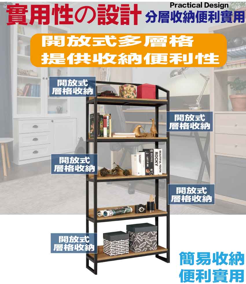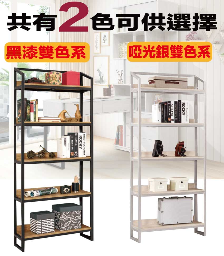 【文創集】華爾2.7尺開放式金屬邊框書櫃-黑漆雙色(客約商品)