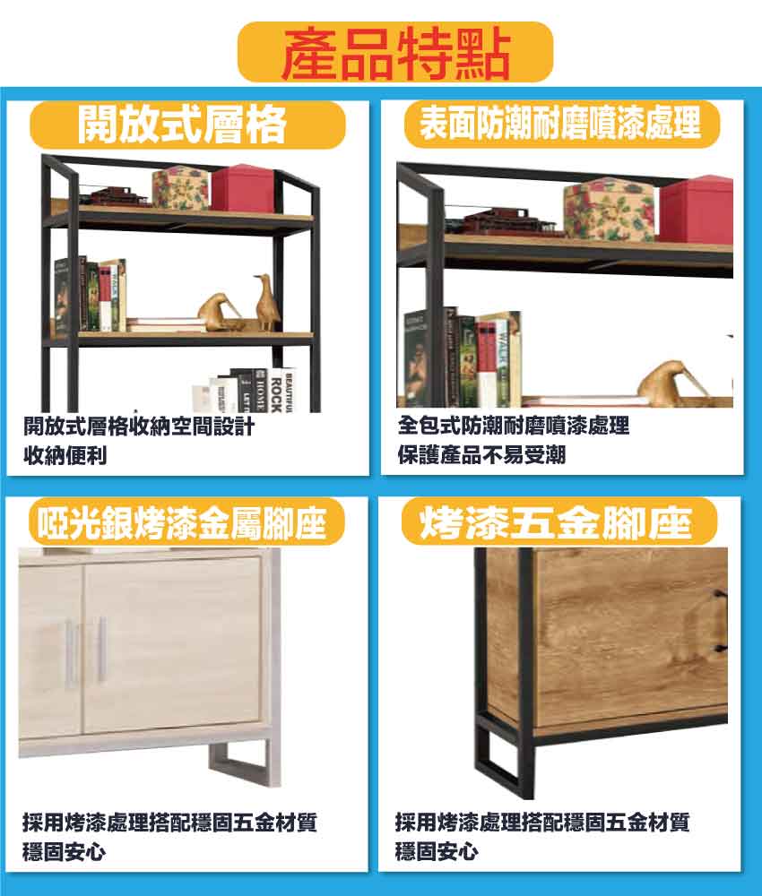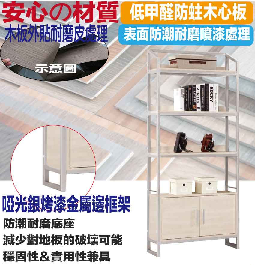 【文創集】華爾2.7尺開放二門金屬邊框書櫃(二色可選) 二色可選+安心材質製造,使用放心+搭配居家更便利,採用防蛀木心板+烤漆五金腳座+啞光銀金屬邊框等安心材質製造 ,外層採用防潮耐磨噴漆處理搭配採用開門櫃+內外開放層格等收納空間設計,全由專人配送到家,專業安心服務,替你省下更多時間
