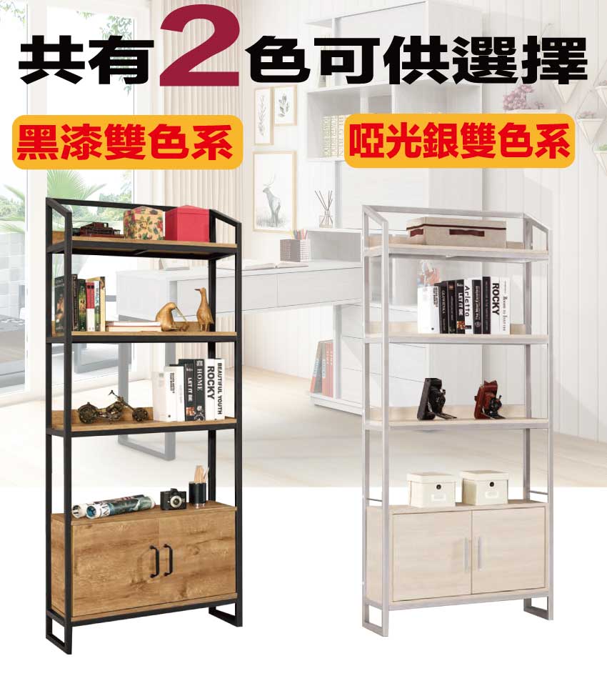 【文創集】華爾2.7尺開放二門金屬邊框書櫃-啞光銀雙色(客約商品)