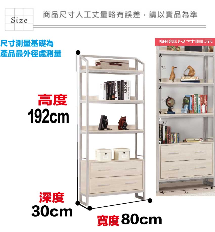 尺寸:(寬)80x(深)30x(高)192/公分