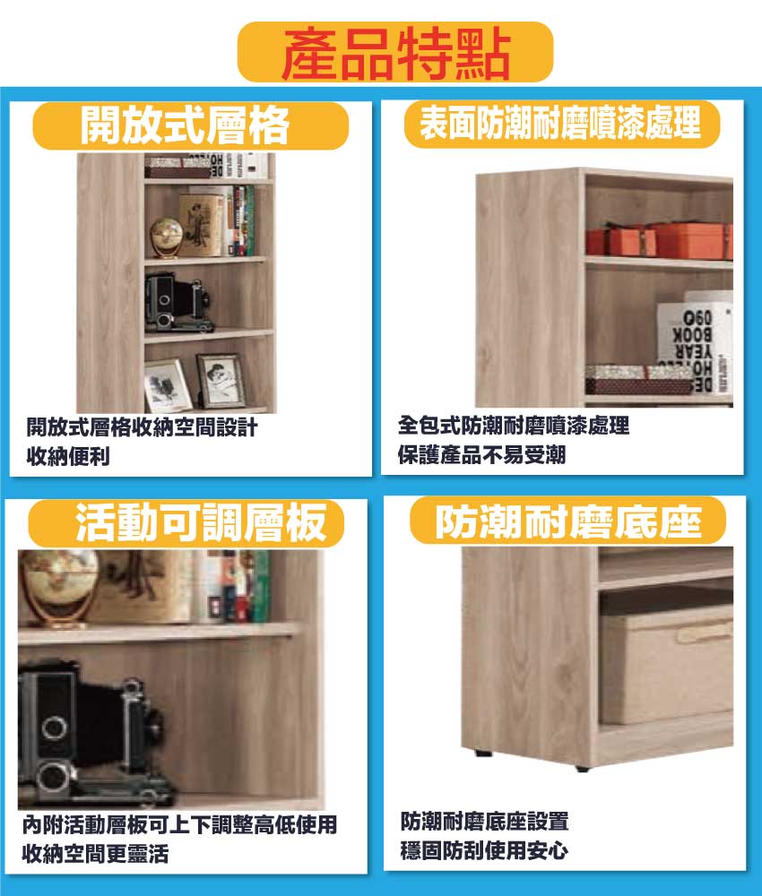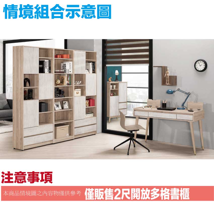 【文創集】諾爾2尺開放式多格書櫃(客約商品)