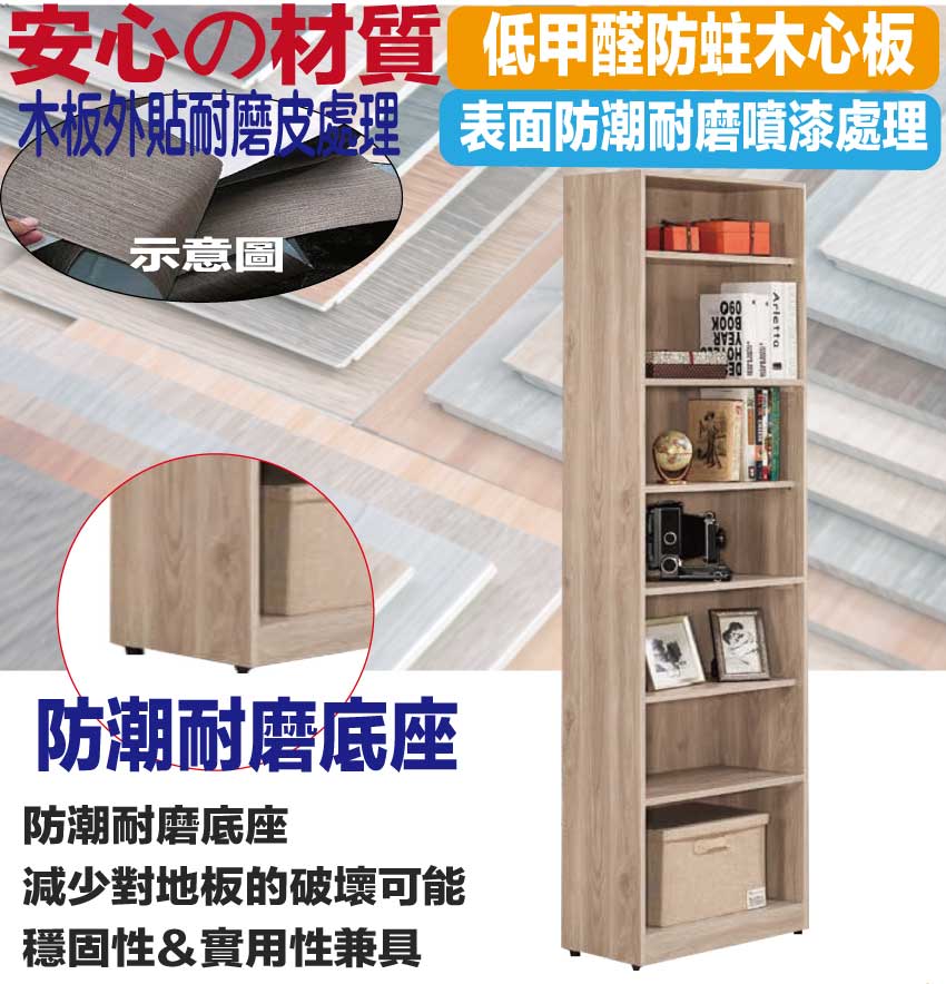 【文創集】諾爾2尺開放式多格書櫃 橡木紋色系+安心材質製造,使用放心+搭配居家更便利,採用防蛀木心板+防潮耐磨底座等安心材質製造 ,外層採用防潮耐磨噴漆處理搭配採用開放多層格收納空間設計,全由專人配送到家,專業安心服務,替你省下更多時間!