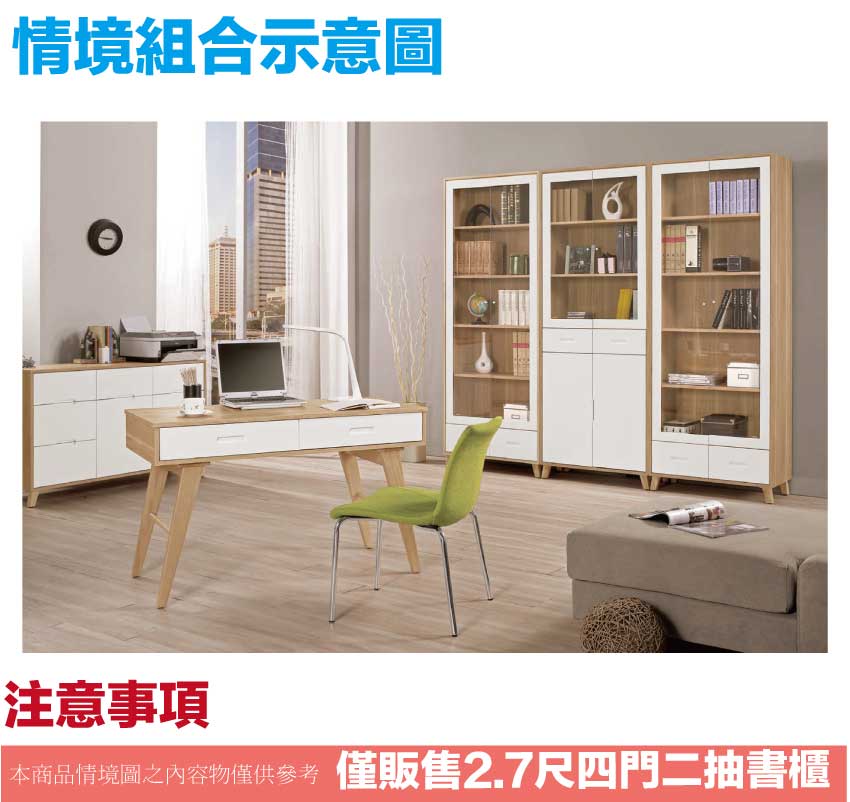 【文創集】卡蜜雙色2.7尺四門二抽書櫃(客約商品)