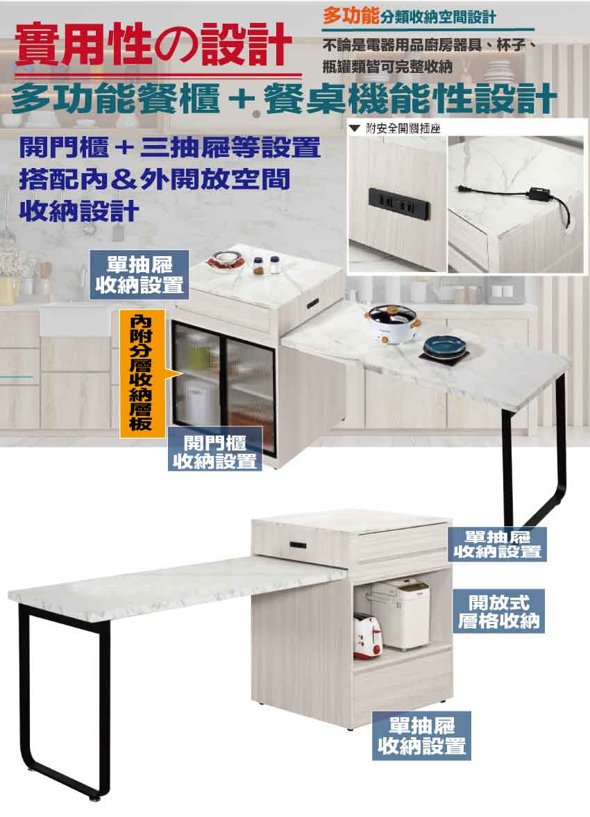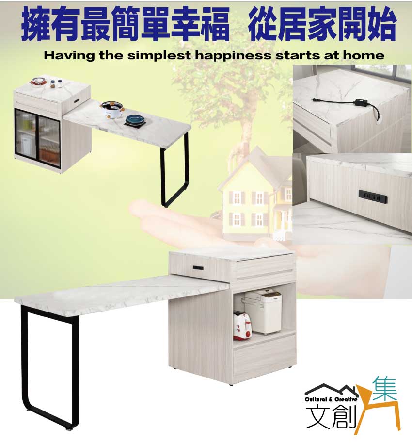 【文創集】寶亞雙色5.1尺多功能中島桌櫃組合(桌面板可伸縮使用) 木紋雙色系+安心材質製造,使用放心+搭配居家更便利,採用防蛀木心板+防潮耐磨底座+防夾手緩衝門片五金+仿石紋耐磨美耐皿桌面板+5mm強化直紋玻璃+五金滑軌結構+烤漆五金腳座等安心材質製造 ,外層採用防潮耐磨噴漆處理搭配採用開門櫃+三抽屜+開放層格等收納空間設計,全由專人配送到家,專業安心服務,替你省下更多時間!