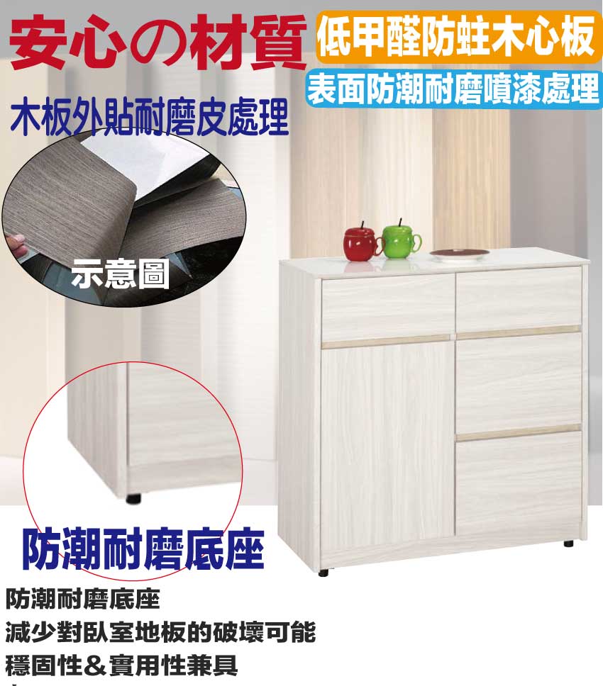 【文創集】寶亞2.7尺岩板四抽低餐櫃 木紋雙色系+安心材質製造,使用放心+搭配居家更便利,採用防蛀木心板+防潮耐磨底座+防夾手緩衝門片五金+12mm高硬度岩板桌面板+五金滑軌結構等安心材質製造 ,外層採用防潮耐磨噴漆處理搭配採用開門櫃+四抽屜+內開放層格等收納空間設計,全由專人配送到家,專業安心服務,替你省下更多時間!