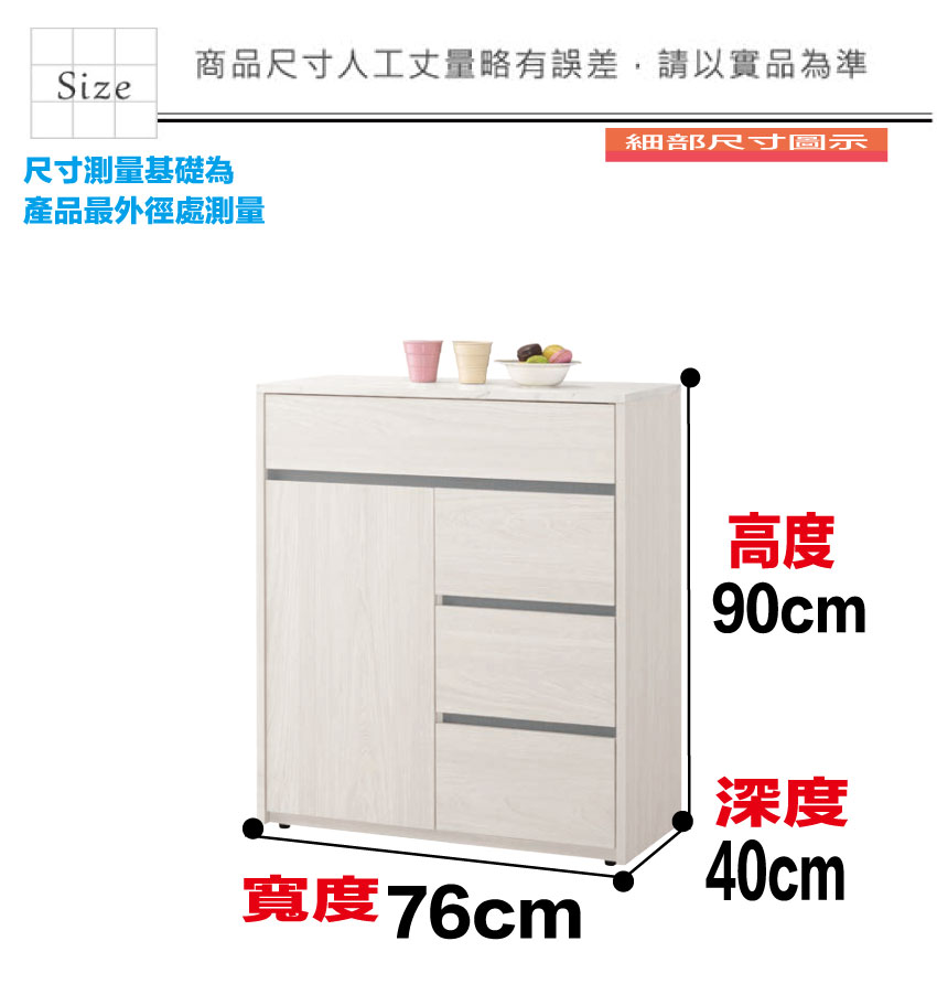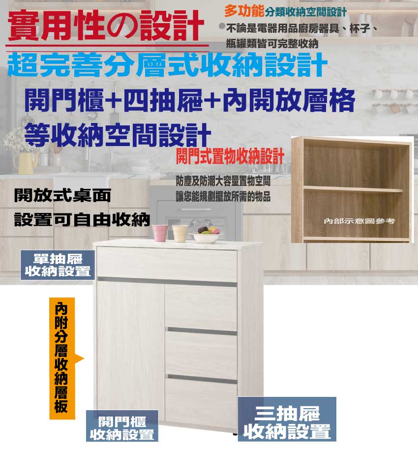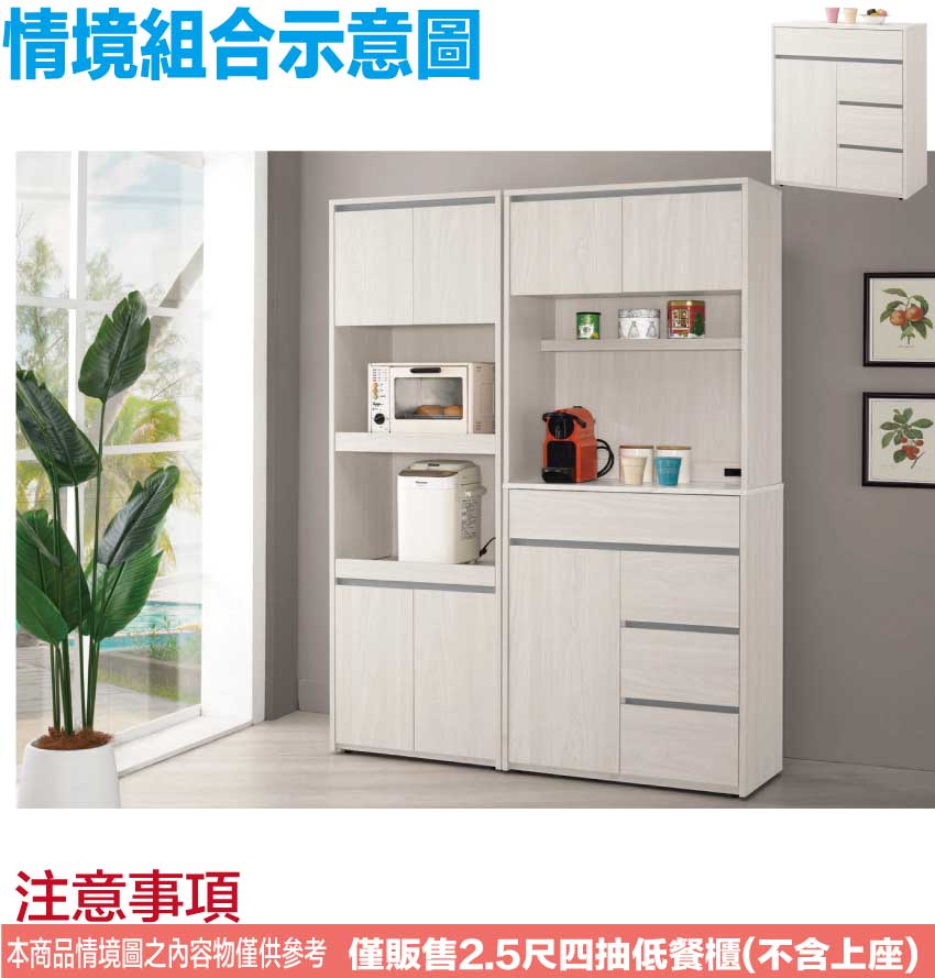 【文創集】華爾雙色2.5尺單門四抽低餐櫃(客約商品)