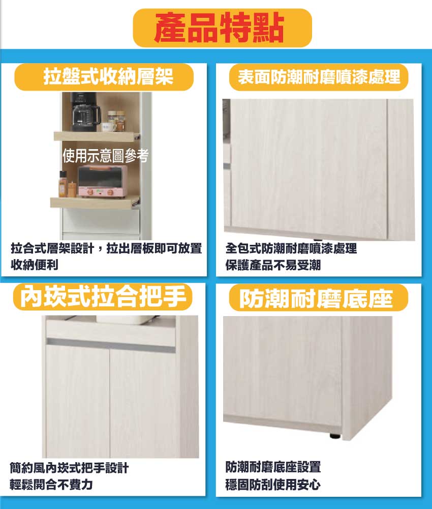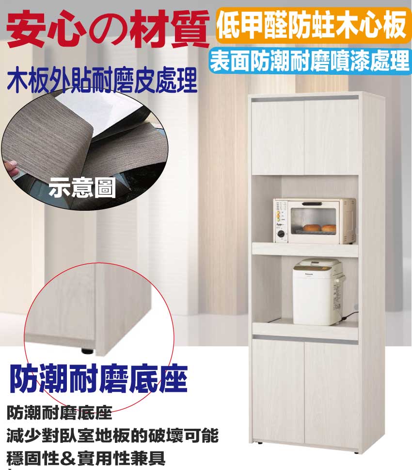採用防蛀木心板+防潮耐磨底座+防夾手緩衝門片五金等安心材質製造