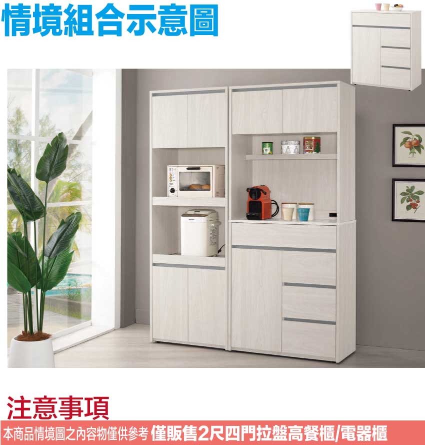【文創集】華爾雙色2尺四門雙拉盤高電器櫃/餐櫃(客約商品)
