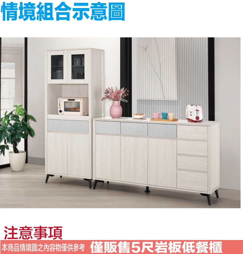 【文創集】克萊雙色5尺岩板六抽低餐櫃(客約商品)