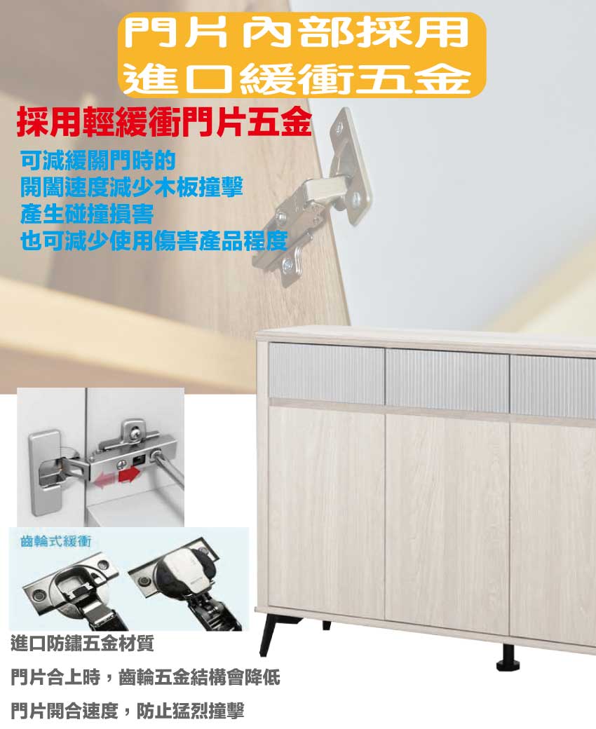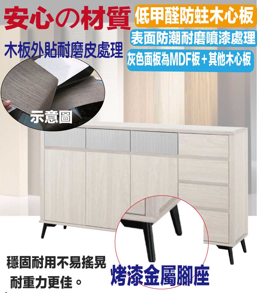 材質:防蛀木心板+防潮MDF板材(灰色耐磨面板)+烤漆五金腳座+防夾手緩衝門片五金+五金滑軌結構+12mm高硬度岩板桌面板