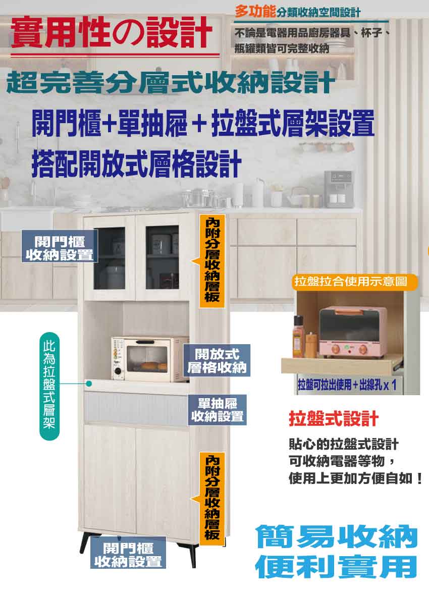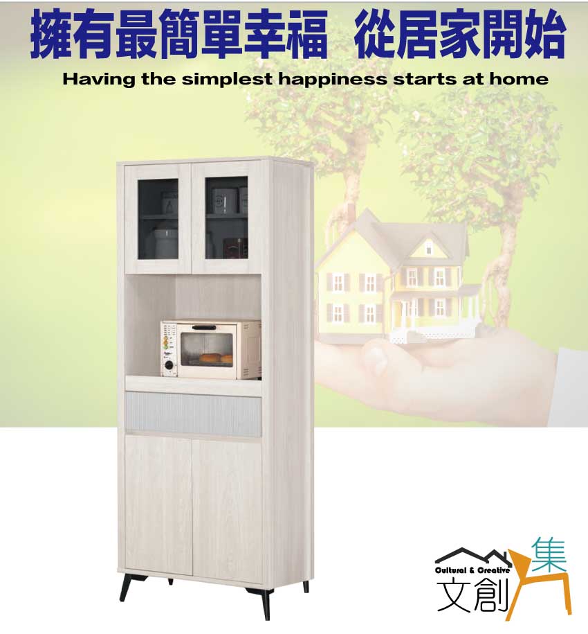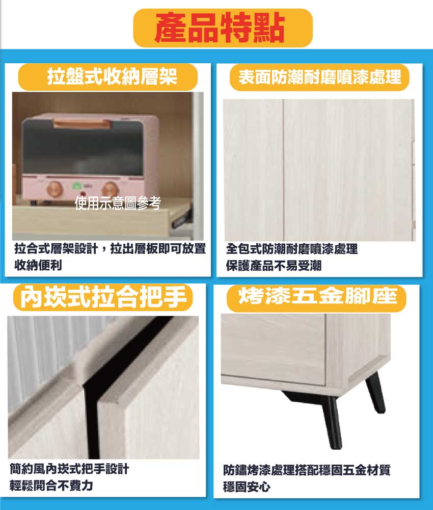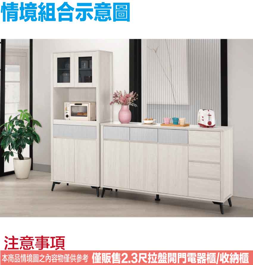 【文創集】克萊雙色2.3尺四門拉盤高電器櫃/餐櫃(客約商品)