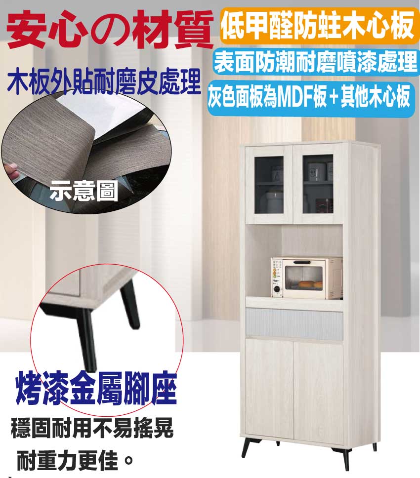 【文創集】克萊雙色2.3尺四門拉盤高電器櫃/餐櫃 木紋雙色系+安心材質製造,使用放心+搭配居家更便利,採用防蛀木心板+烤漆五金腳座+防夾手緩衝門片五金+五金滑軌結構+5mm強化灰玻璃等安心材質製造 ,外層採用防潮耐磨噴漆處理搭配採用開門櫃+單抽屜+拉盤層架+開放層格等收納空間設計,全由專人配送到家,專業安心服務,替你省下更多時間!