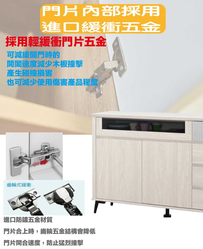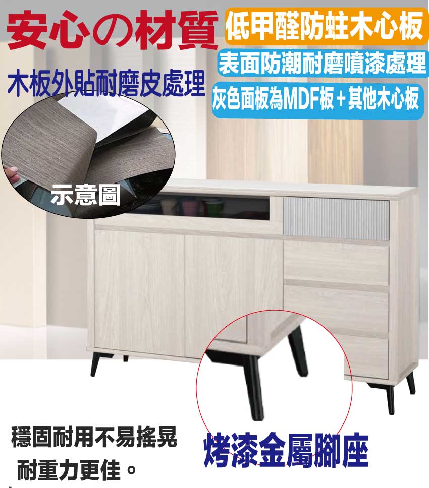 材質:防蛀木心板+防潮MDF板材(灰色耐磨面板)+烤漆五金腳座+防夾手緩衝門片五金+五金滑軌結構+12mm高硬度岩板桌面板
