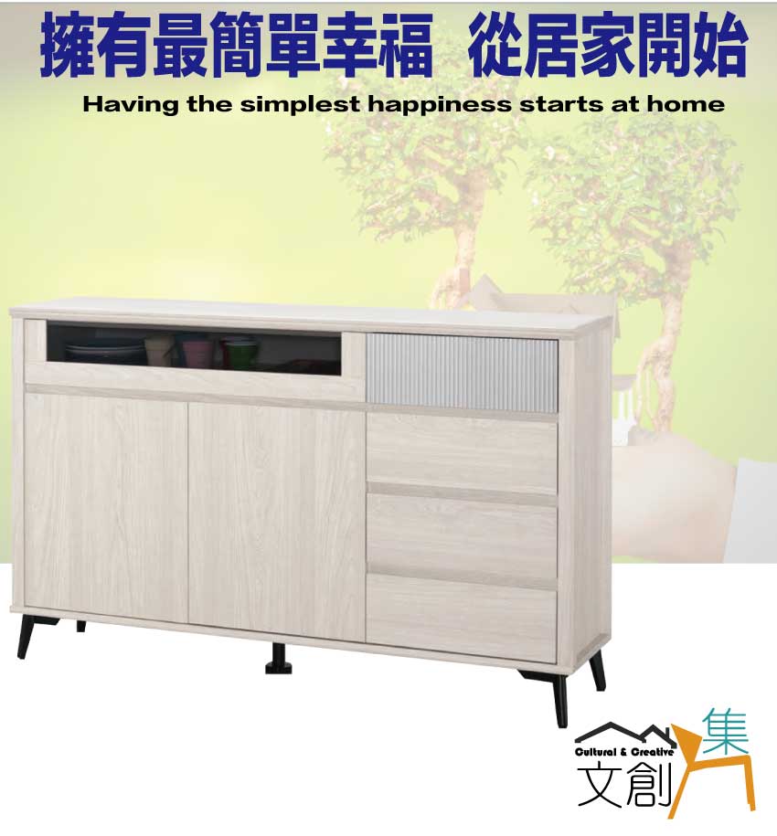 【文創集】克萊雙色4.7尺岩板五抽低餐櫃(客約商品)