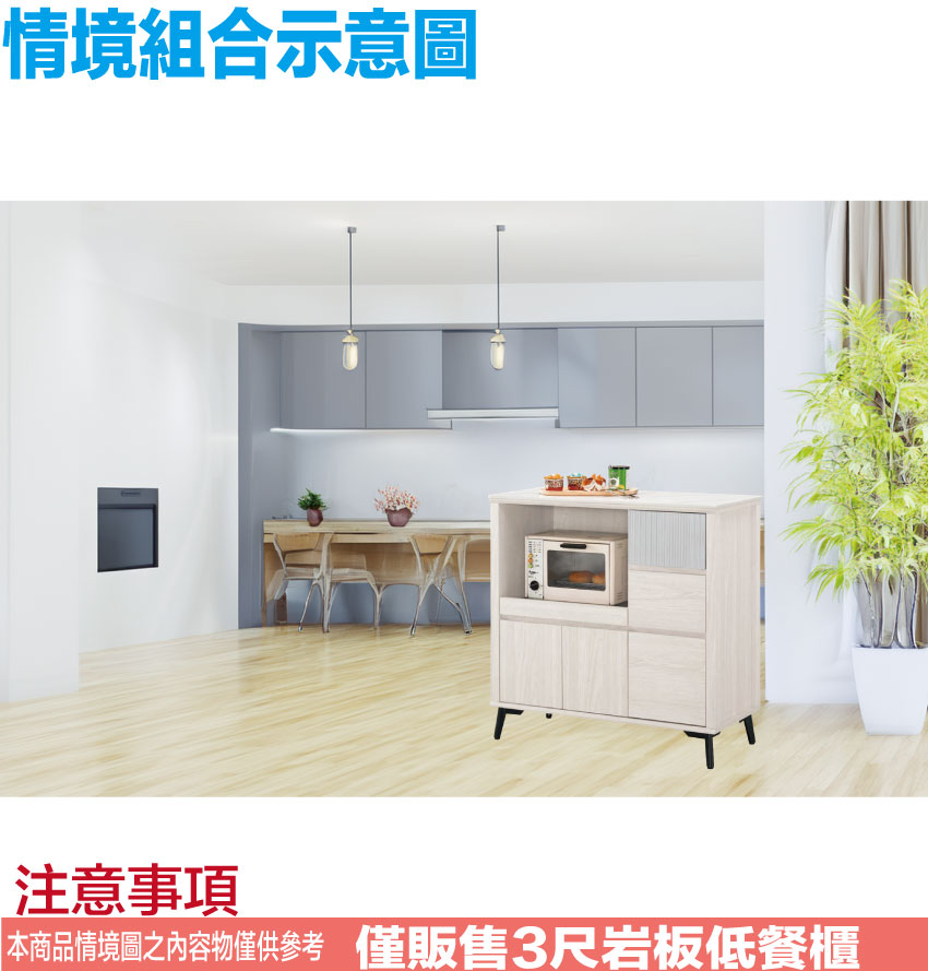【文創集】克萊雙色3尺岩板拉盤低餐櫃(客約商品)