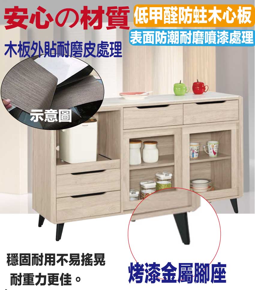 【文創集】萊雅雙色4.9尺岩板拉盤低餐櫃 木紋雙色系+安心材質製造,使用放心+搭配居家更便利,採用防蛀木心板+烤漆五金腳座+五金滑軌結構+12mm高硬度岩板桌面板等安心材質製造 ,外層採用防潮耐磨噴漆處理搭配採用推門櫃+四抽屜+拉盤層架+開放層格等收納空間設計,全由專人配送到家,專業安心服務,替你省下更多時間!