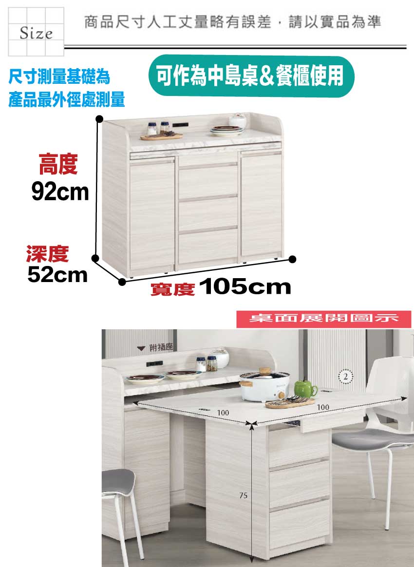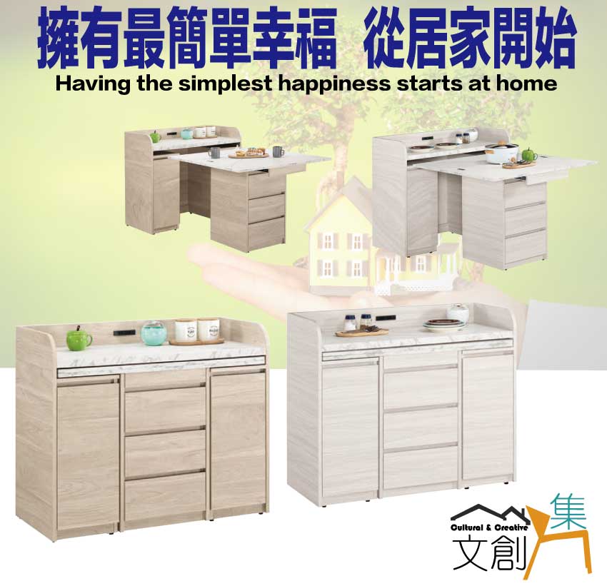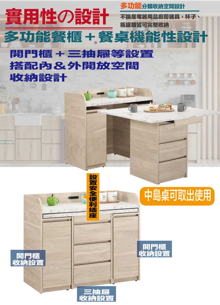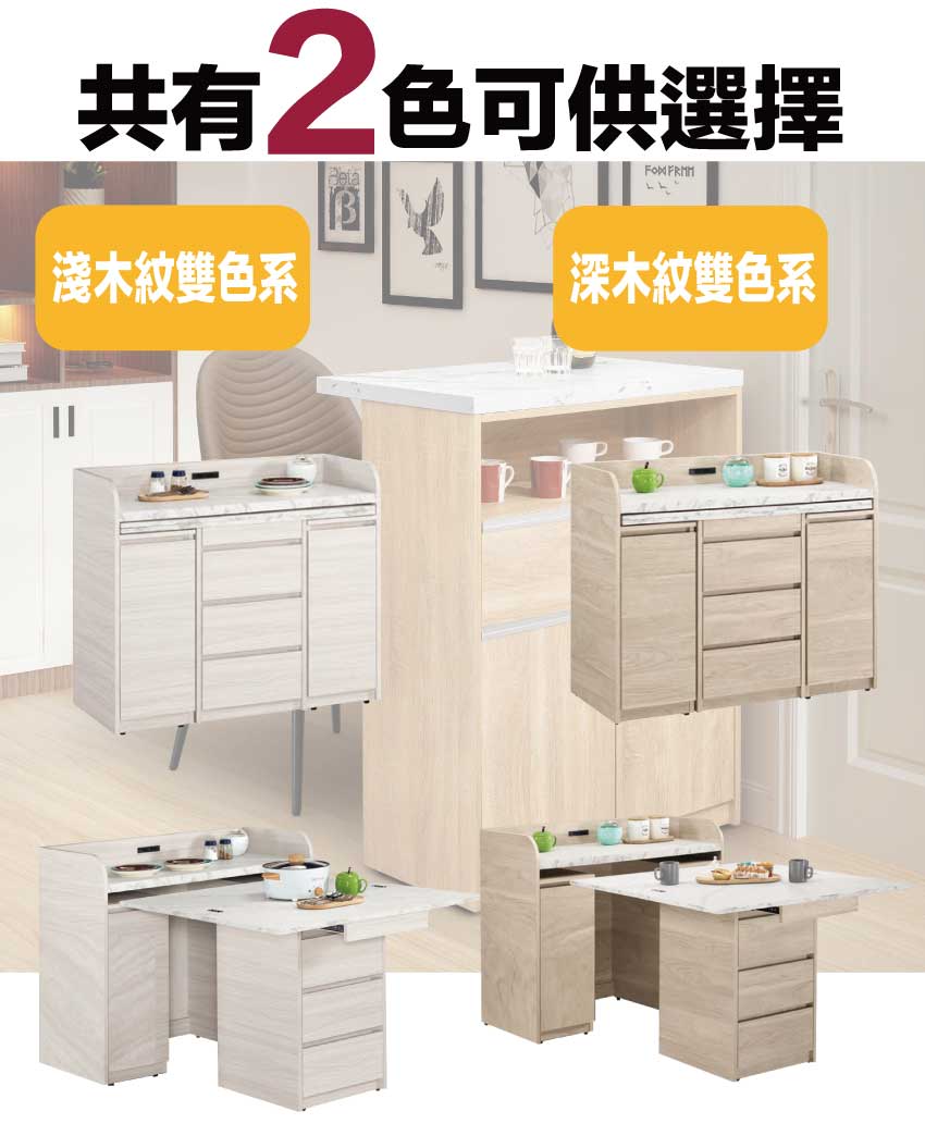 【文創集】華爾3.5尺多功能中島桌餐櫃組合-深木紋雙色系(客約商品)