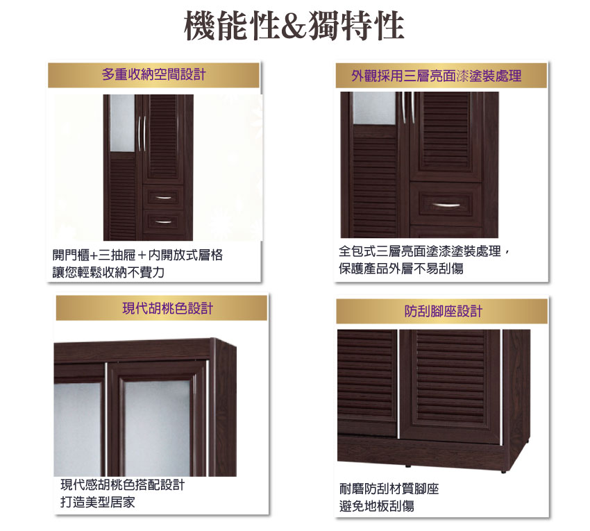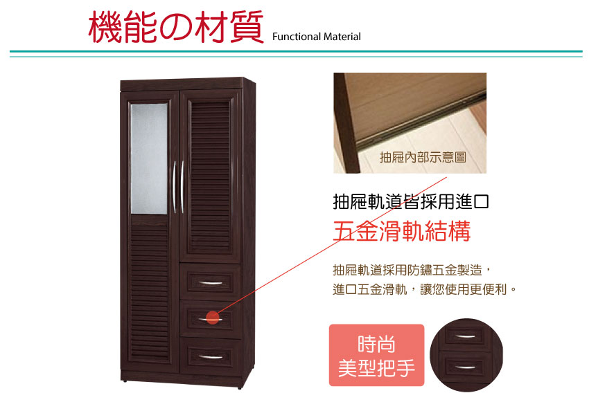 搭配開門櫃+吊衣桿+三抽屜+內開放式收納等便利設計