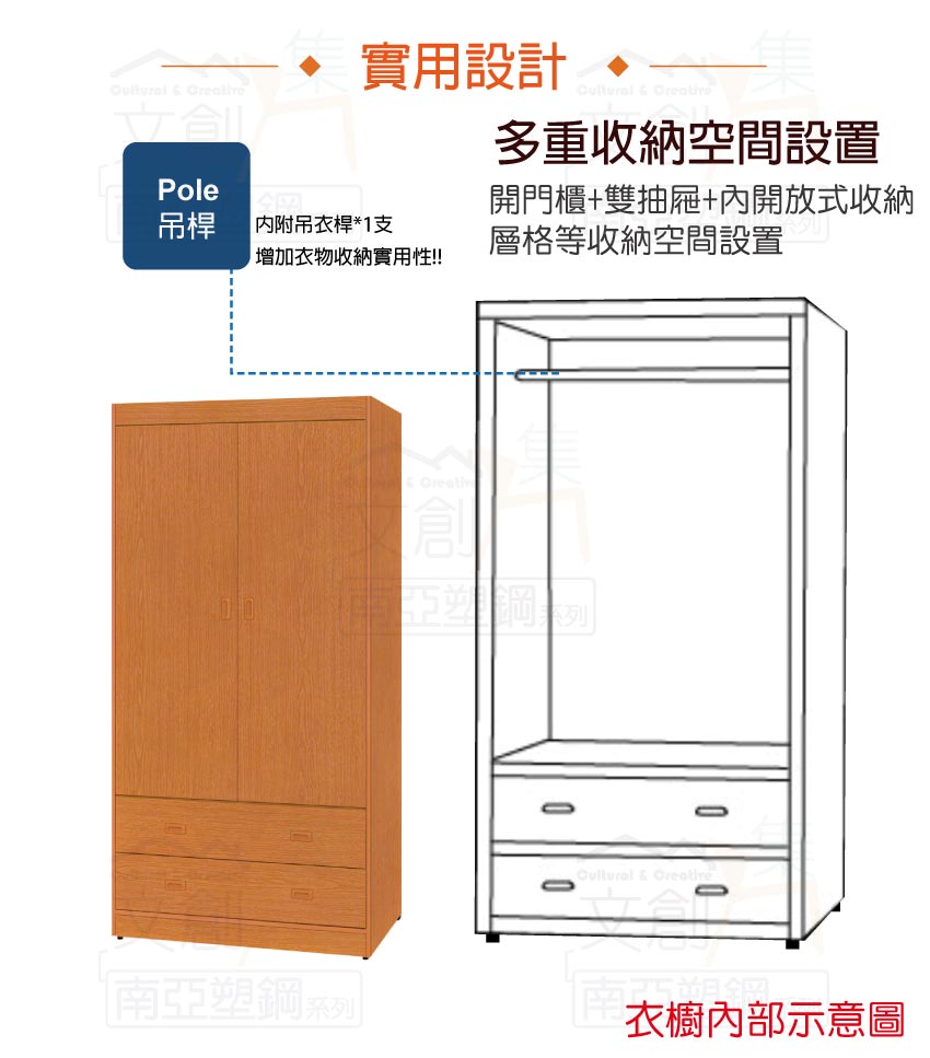 【文創集】賽波 環保3.1尺南亞塑鋼開門二抽高衣櫃/收納櫃(客約商品)