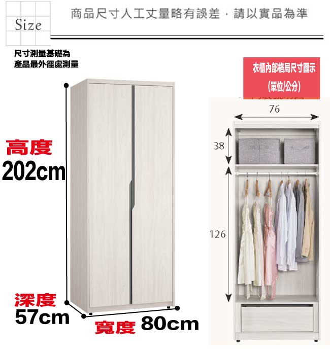 【文創集】丹尼2.7尺二門內單抽衣櫃(客約商品)
