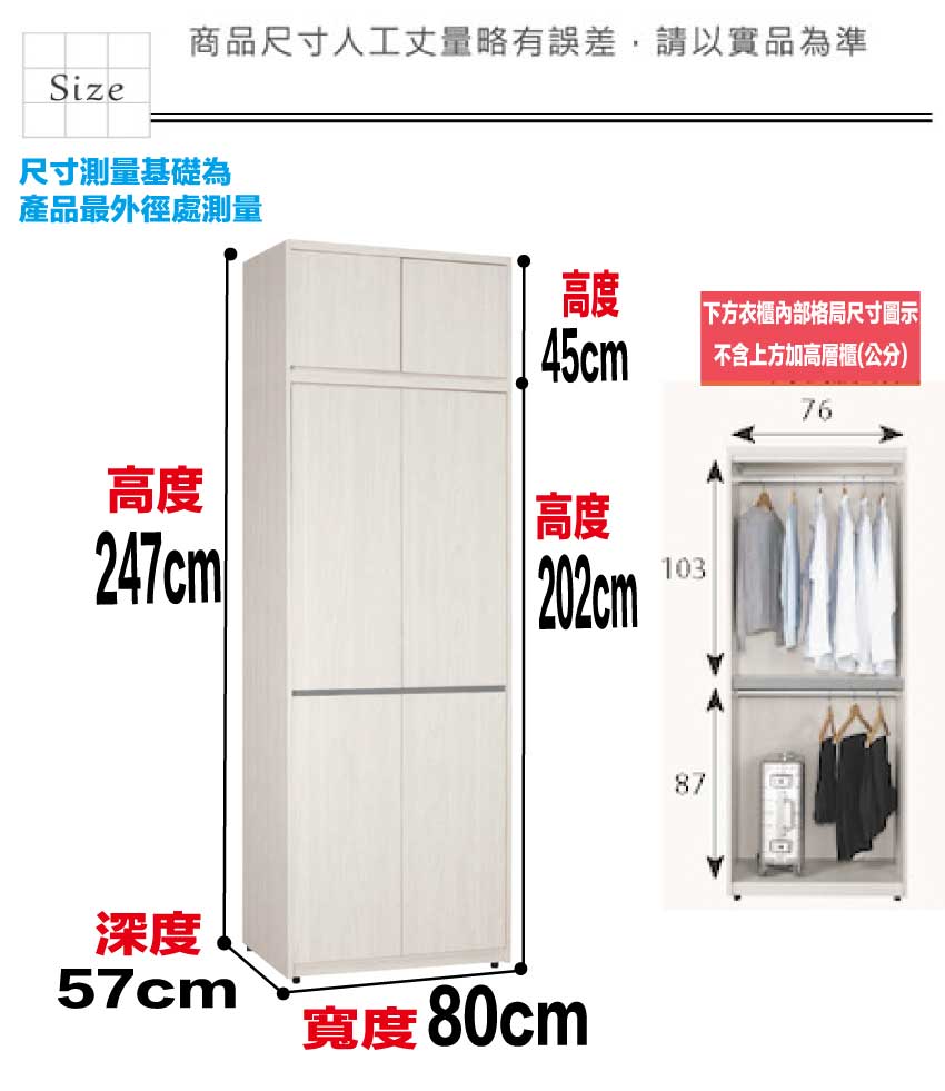 【文創集】華爾2.7尺六門雙吊加高衣櫃(客約商品)