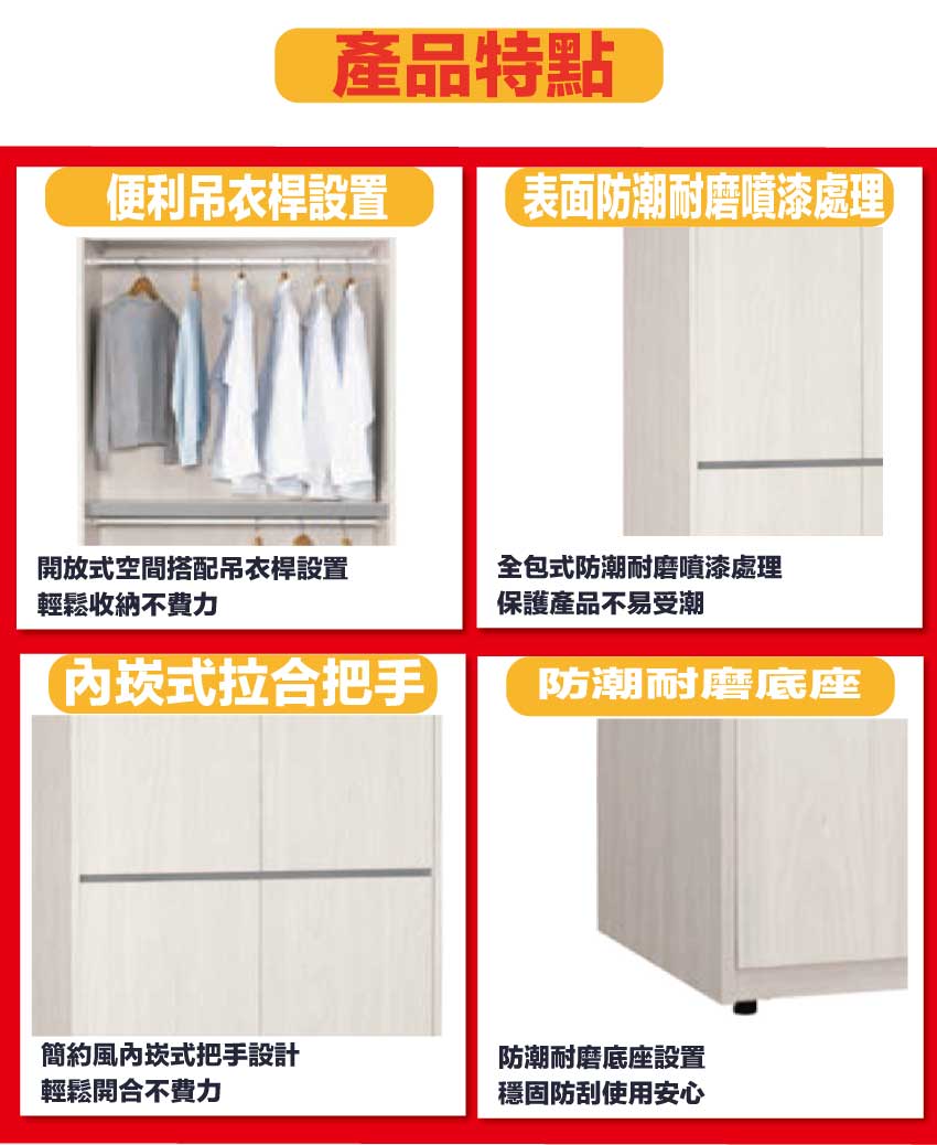 材質:防蛀木心板+防潮耐磨腳座+防夾手緩衝門片五金