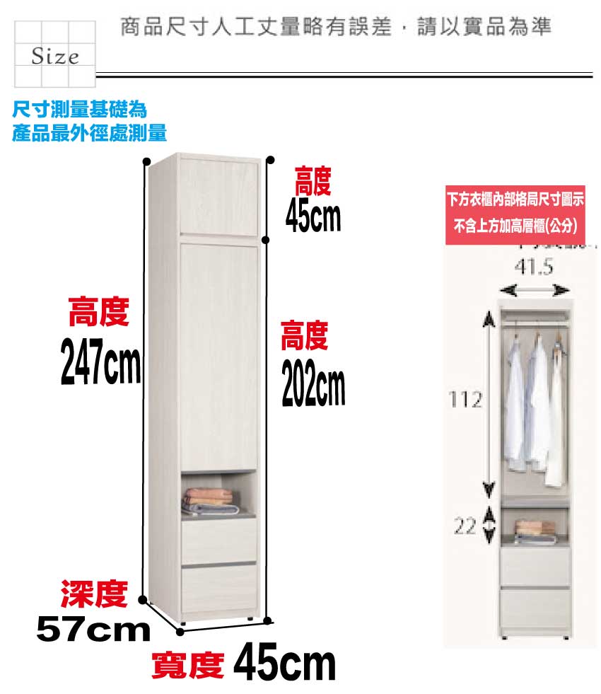 【文創集】華爾1.5尺二門二抽中空加高衣櫃(客約商品)