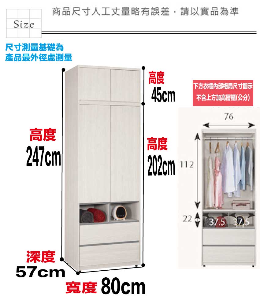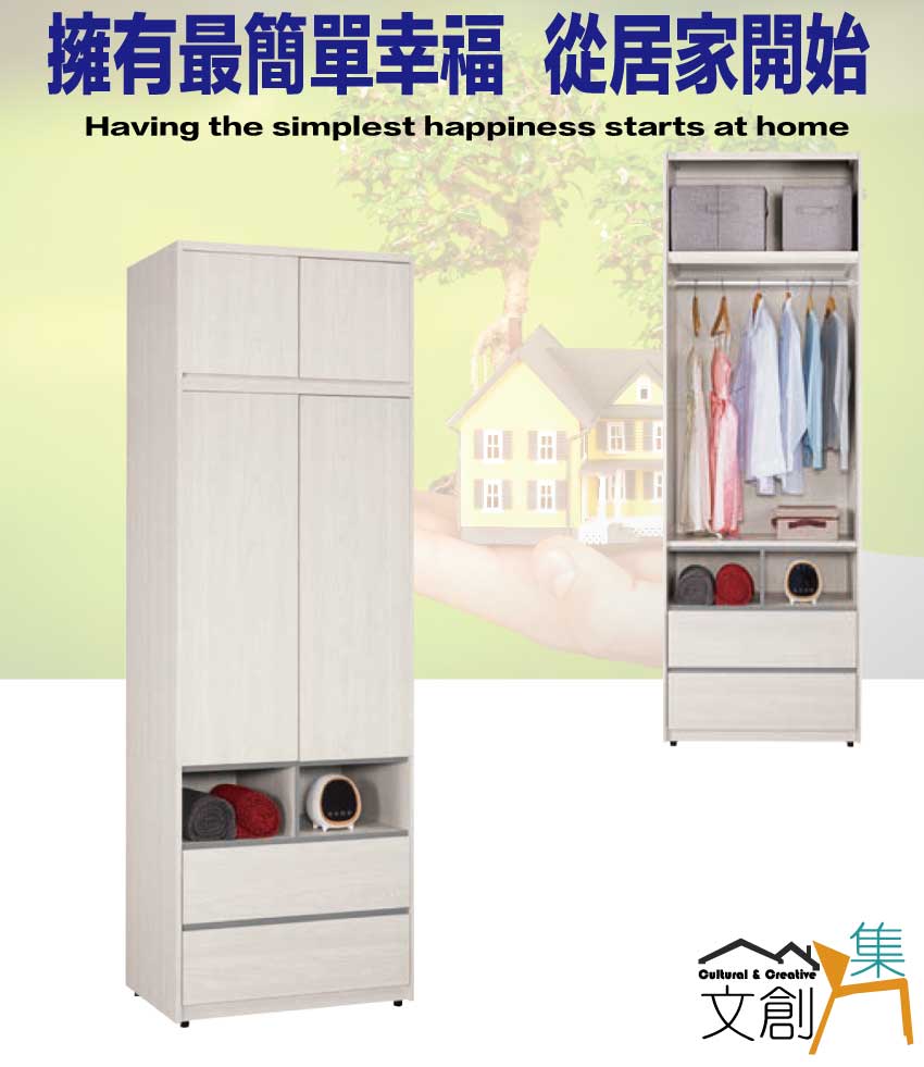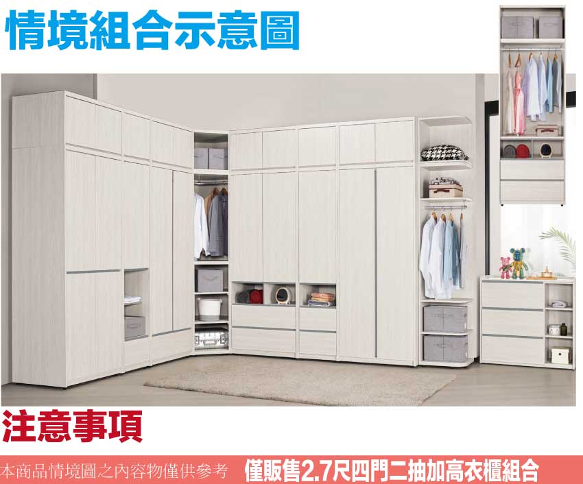 【文創集】華爾2.7尺四門中空二抽加高衣櫃組合(客約商品)