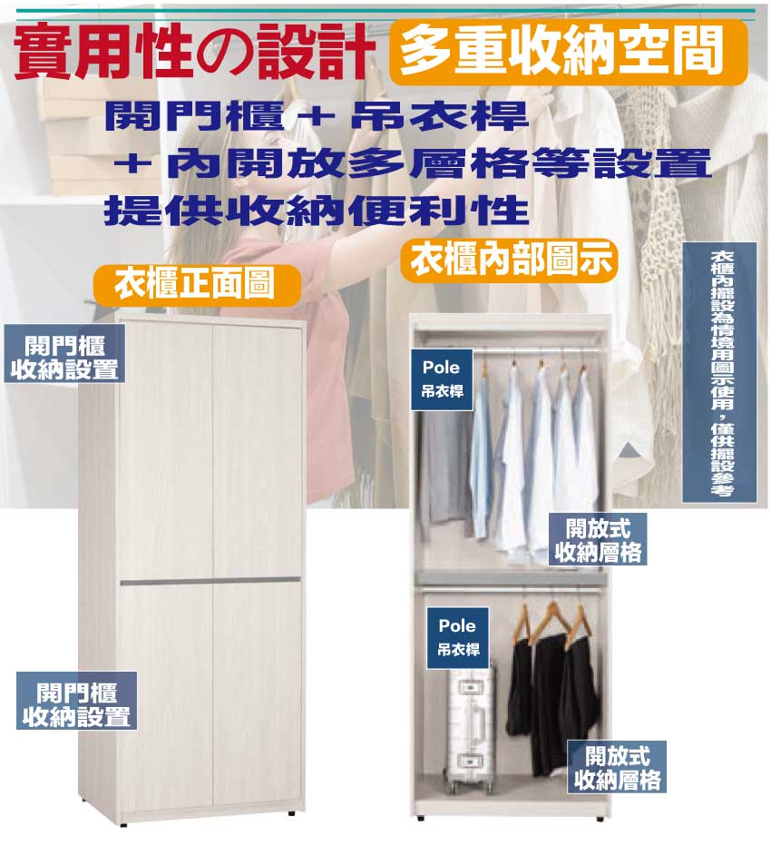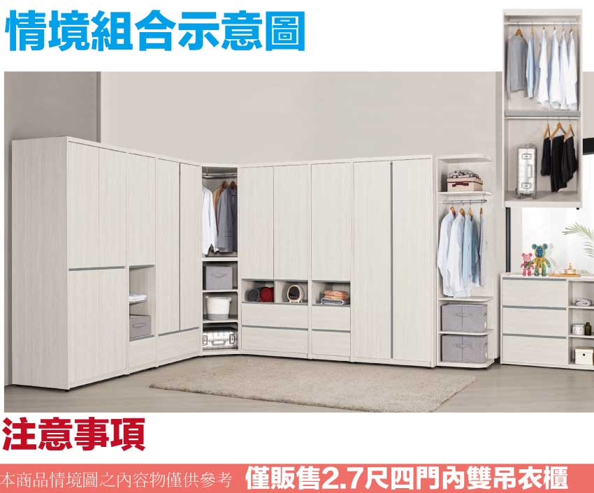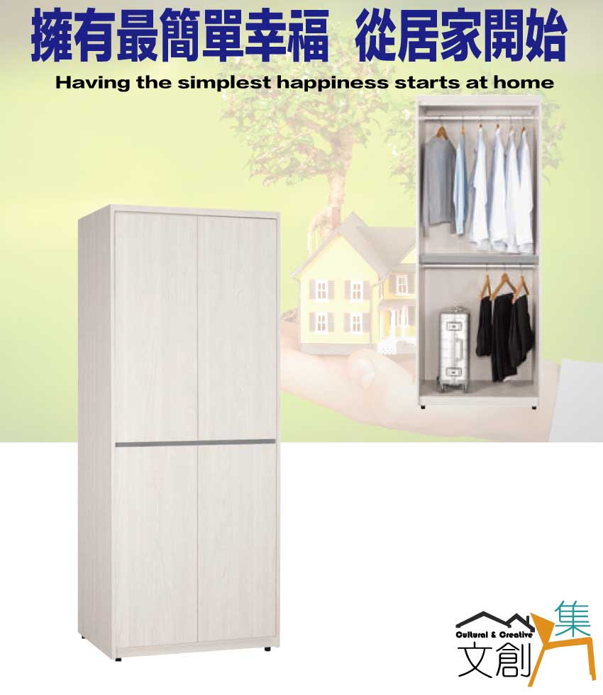 【文創集】華爾2.7尺四門雙吊衣櫃(客約商品)