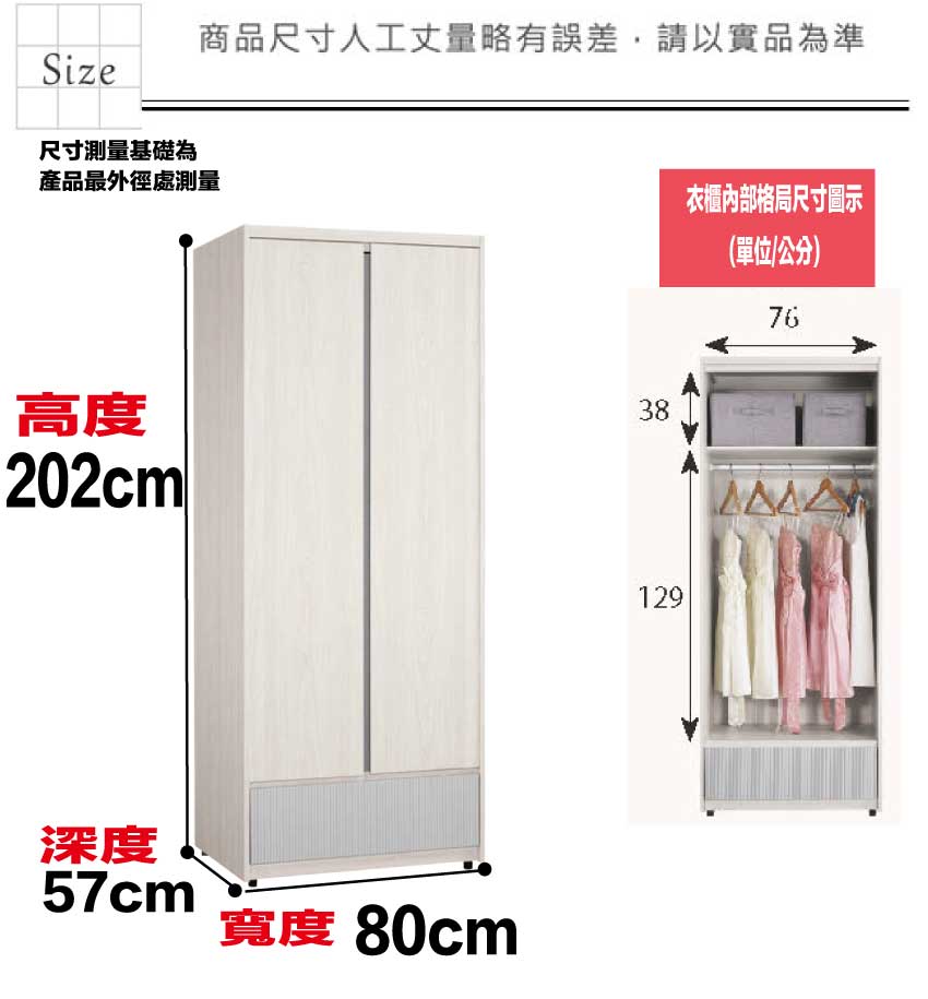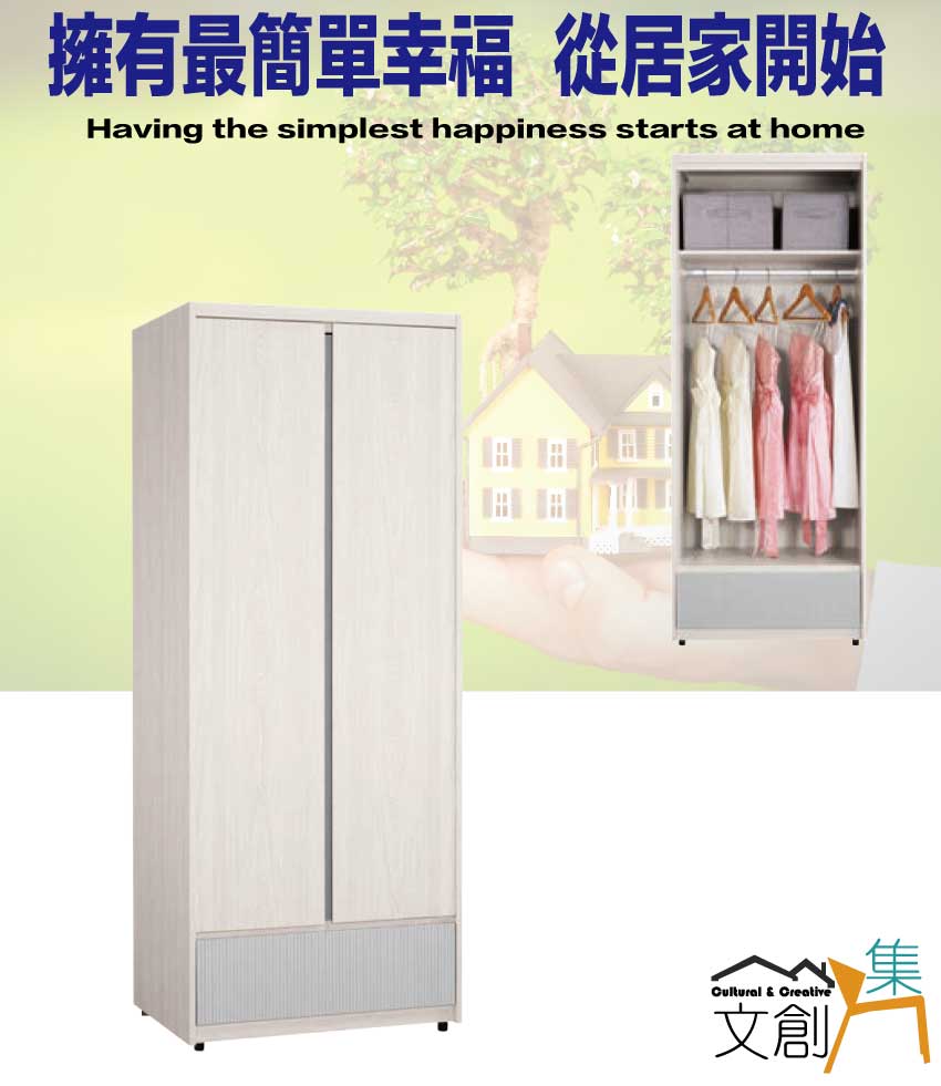 【文創集】克萊雙色2.7尺二門單抽衣櫃(客約商品)