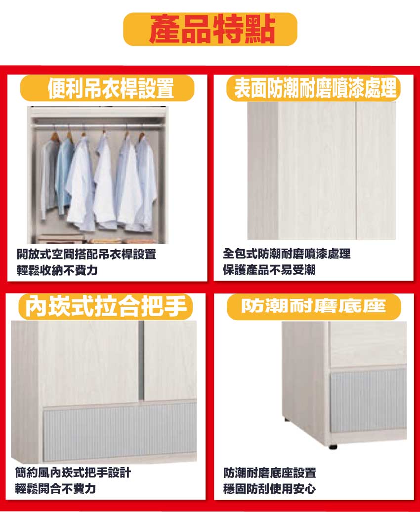 採用防蛀木心板+防潮耐磨底座+防夾手緩衝門片五金+五金滑軌結構等安心材質製造
